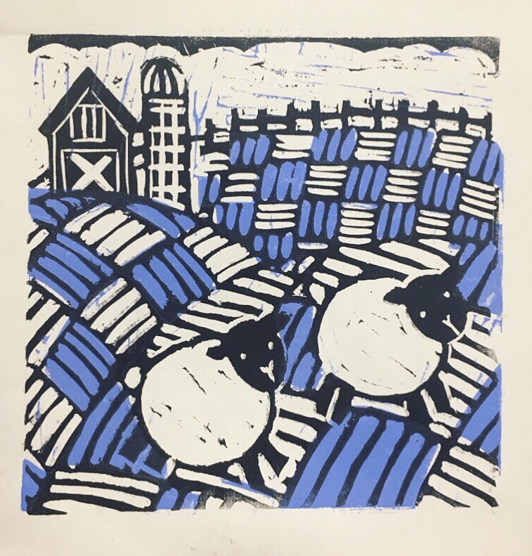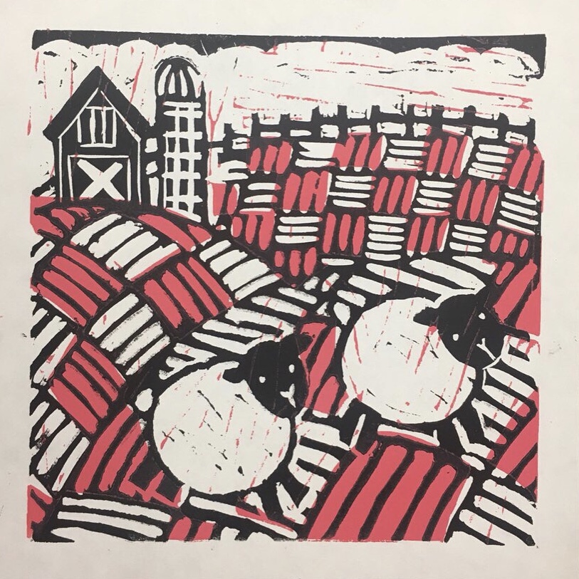To add the colors to the print I had to carve another block, leaving the areas where I wanted there to be color, and print it on the paper before my block with the sheep. I have to be honest, it was quite tricky to line the two blocks up perfectly, something I wasn’t able to achieve with this project. I am, however, very happy with how these turned out in the end!