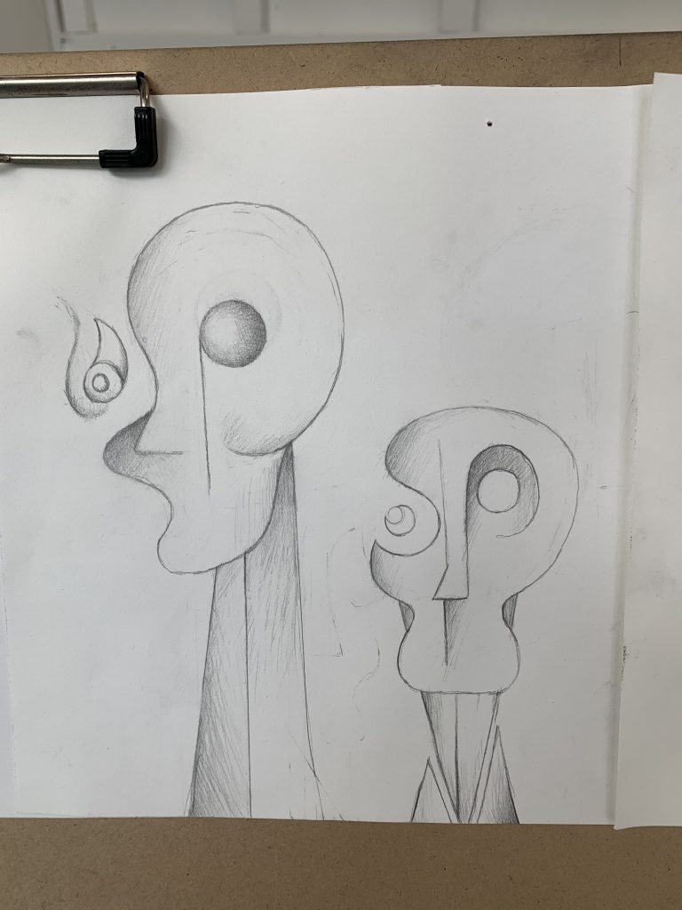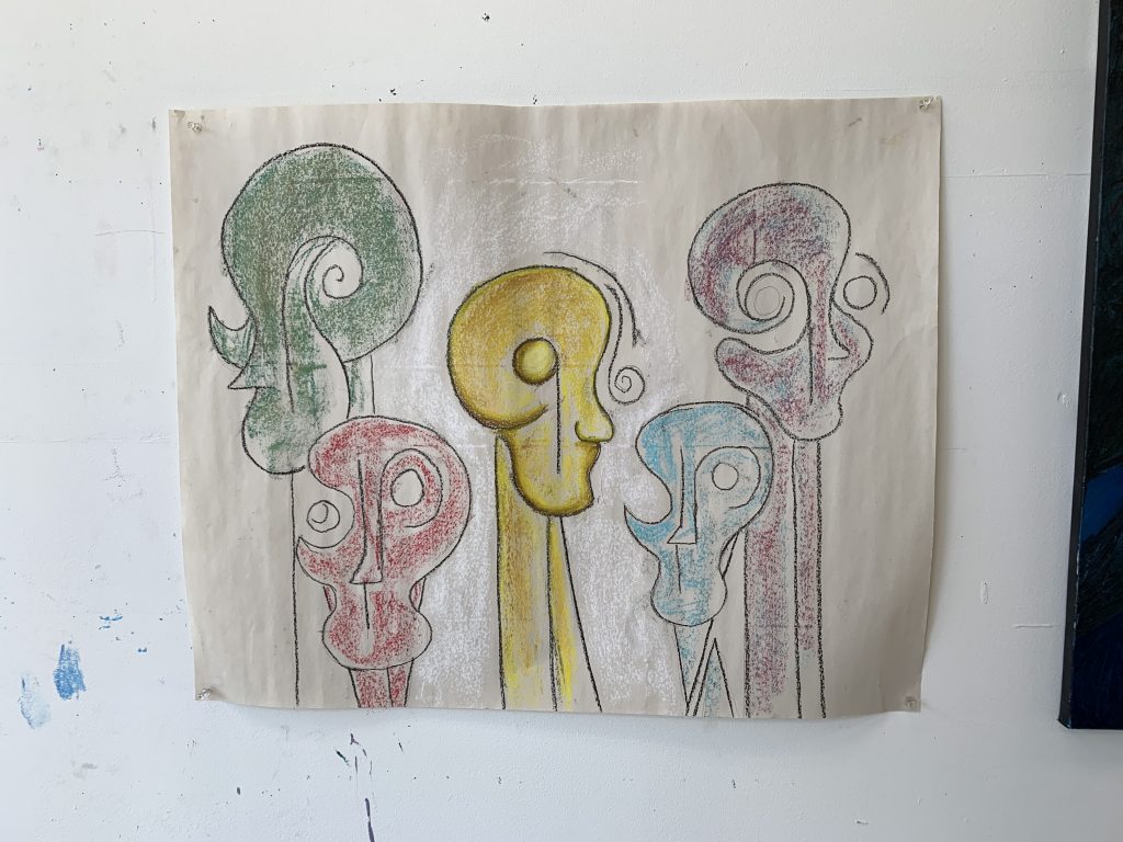 Seen above are pictures from the early planning phases of this painting. simple things like how i would like the figures to look like and what colors would work best in the final piece. Usually by this point i would already have had a title picked out or at least a couple potential names that id be mulling over in my head, but I really had nothing. This is unusual for me especially with a painting like this one that has such a clear(at least in my head) real-world inspiration. Without spoiling whatever meaning you’d have made out of this piece, this painting -to me- is supposed to depict my friends and I. obviously we don’t really look exactly like this, but maybe in another dimension somewhere we ALL look like this. there’s probably some inter-dimensional family portrait like this hanging up in some beings living-room as we speak! Anyway, you’d think that something that’s supposed to represent something as simple as friendship would be easy-peasy when it came to titling, but no dice.