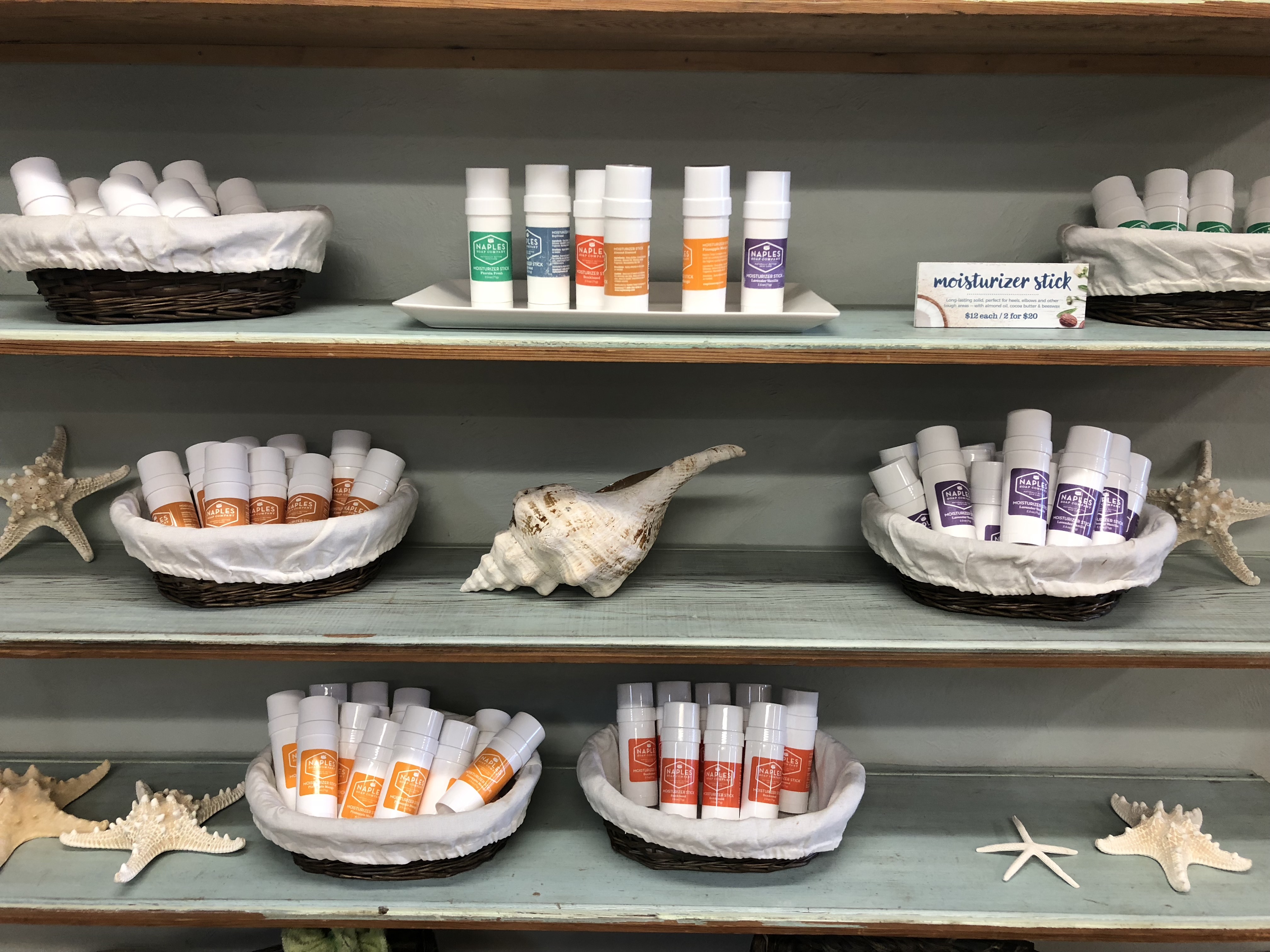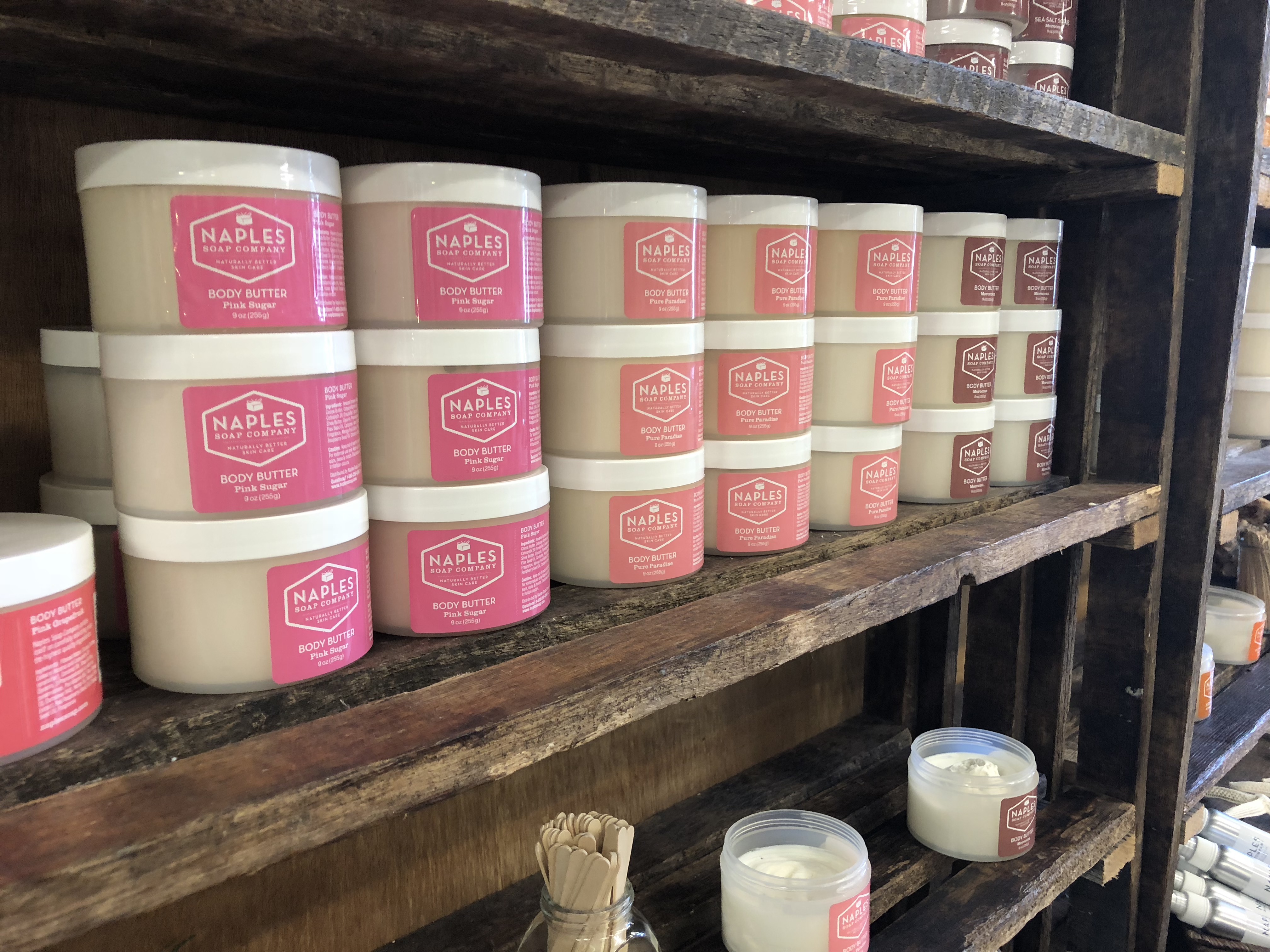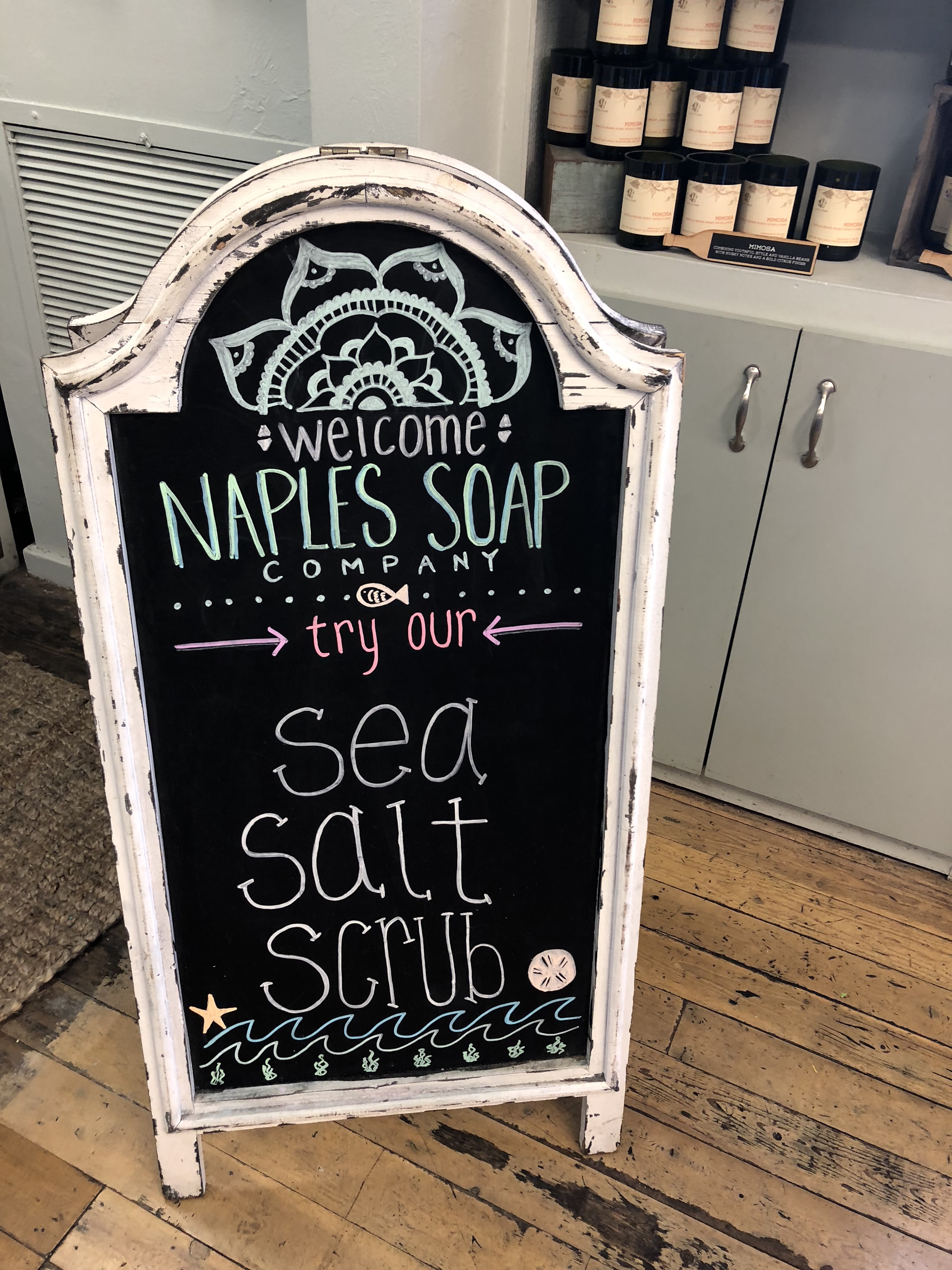 Traveling from store to store I am always looking at inspiration, and figuring how they attract their customers. The Naples Soap Company, is a bright and fun shop. Not only do their amazing smells bring you in, their light, fun colored decor and beautiful packaging can catch anyones eye.