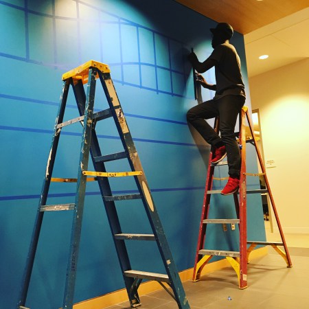 In the fall of 2016, graphic designer (and former blogger), Emmanuel “Manny” Adjei and I were approached by the head of the business department and were asked to paint a mural in the newly erected Learning Commons. This was an honor to have our creativity recognized by the Marywood society outside the limits of the art program. This was also a great opportunity to represent the Marywood art community and contribute to the revitalization of our campus. The mural we created is located on the third floor of the Learning Commons.