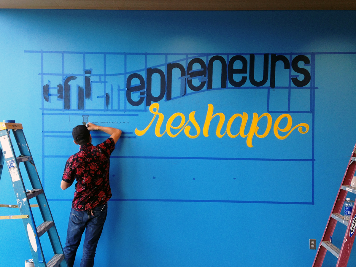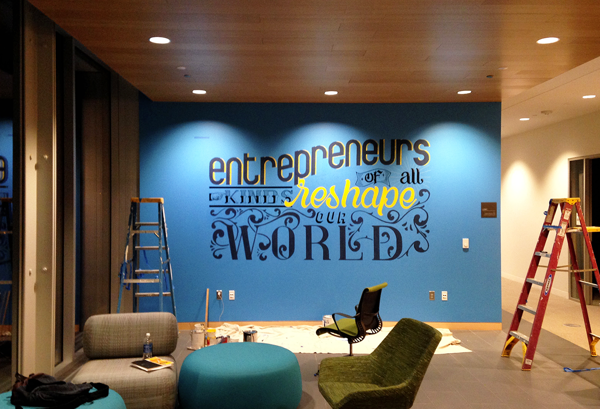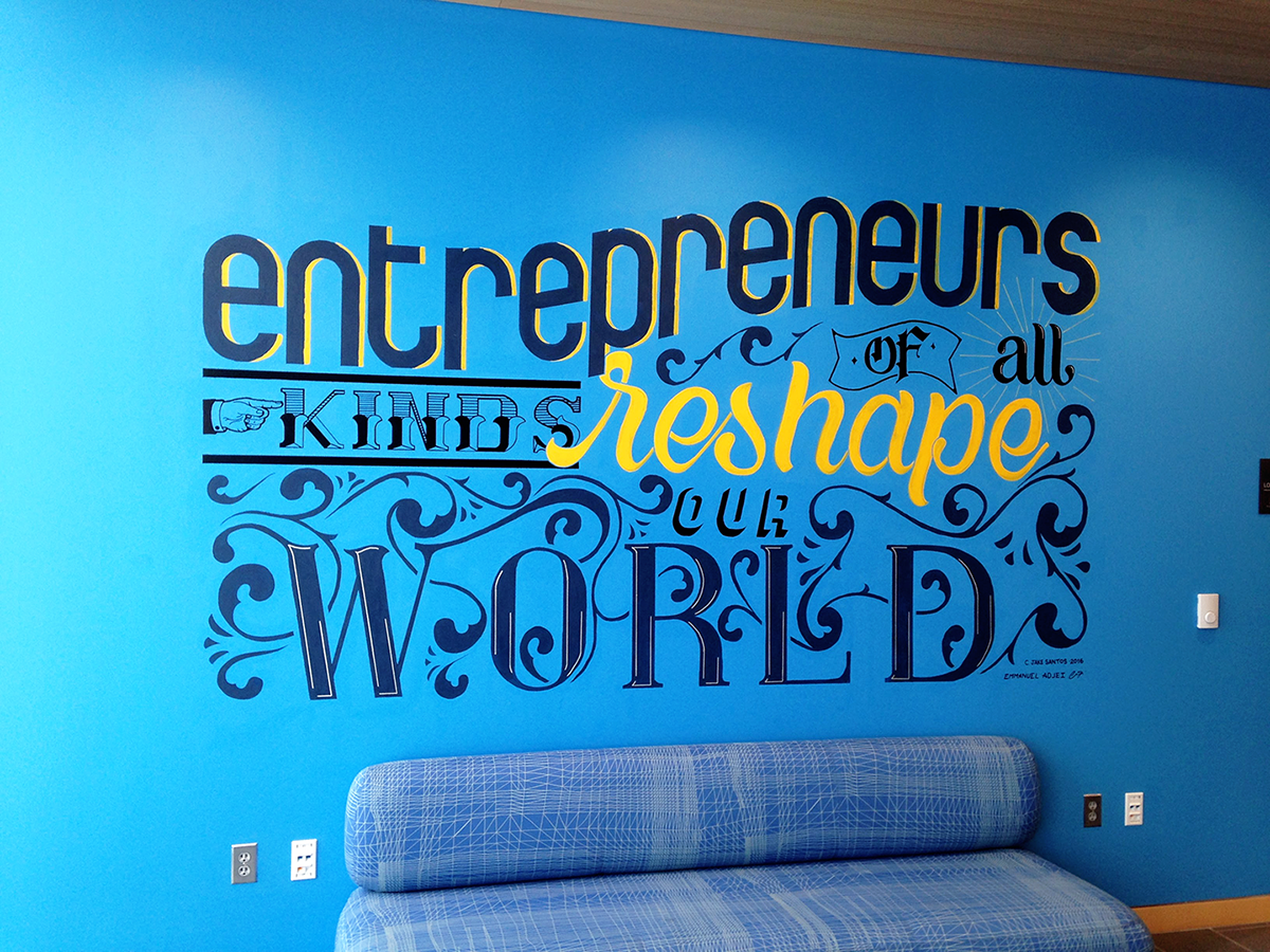 One of the great benefits of Marywood is that we are well established in the community outside of the university. There are many great opportunities to become connected to in The Electric City. Emmanuel and I have been commissioned for several collaborative mural pieces throughout the Lackawanna county, including the holiday storefront handlettering we did in downtown Scranton, shown below: