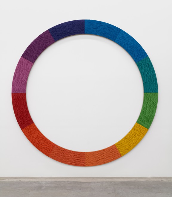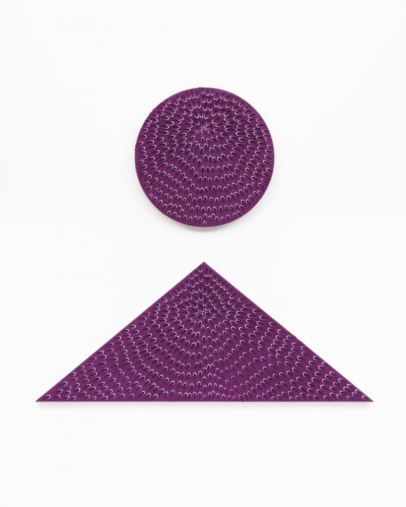 Jennifer Guidi is an American painter who currently has a virtual exhibit at the Gagosian Gallery in New York. This exhibit ‘Gemini’ is influenced by, of course, the Zodiac and the idea of dualities– “light and darkness, abstraction and figuration, science and mysticism… Guidi finds symmetry in opposition.” The featured works are all comprised of sand with oil and acrylic paints on different shaped canvases.
