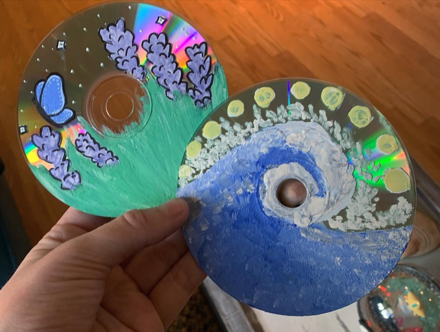 One thing I’ve found I enjoy doing during this weird time is painting on different objects. This week I’ll be showing you how to paint on old CD’s that are blank and have no music on them!