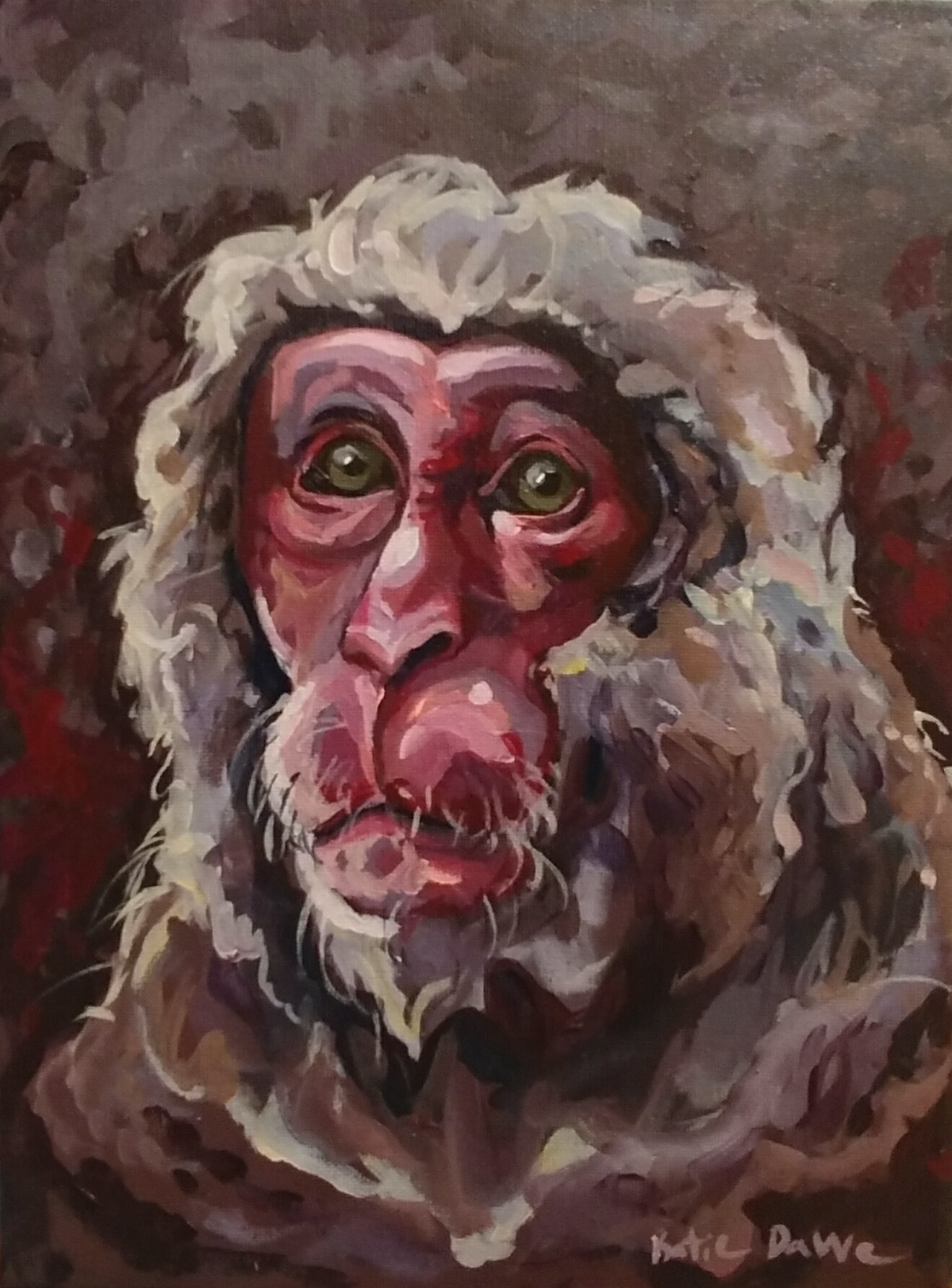 I love painting portraits of people. Specifically I love painting the wrinkles of the face and capturing a specific expression, but sometimes when I want to play around and experiment with faces I do monkey portraits instead. Monkey faces can take on the same format as a human portrait, but they are much more expressive and often silly. They allow me to play with color, since some have red or blue skin, and they usually have an abundance of wrinkles around the eyes that are fun to paint. In addition to this they are my mom’s favorite animal and she gets very excited every time I paint one, so I have been making them for years and have gotten pretty good at it.