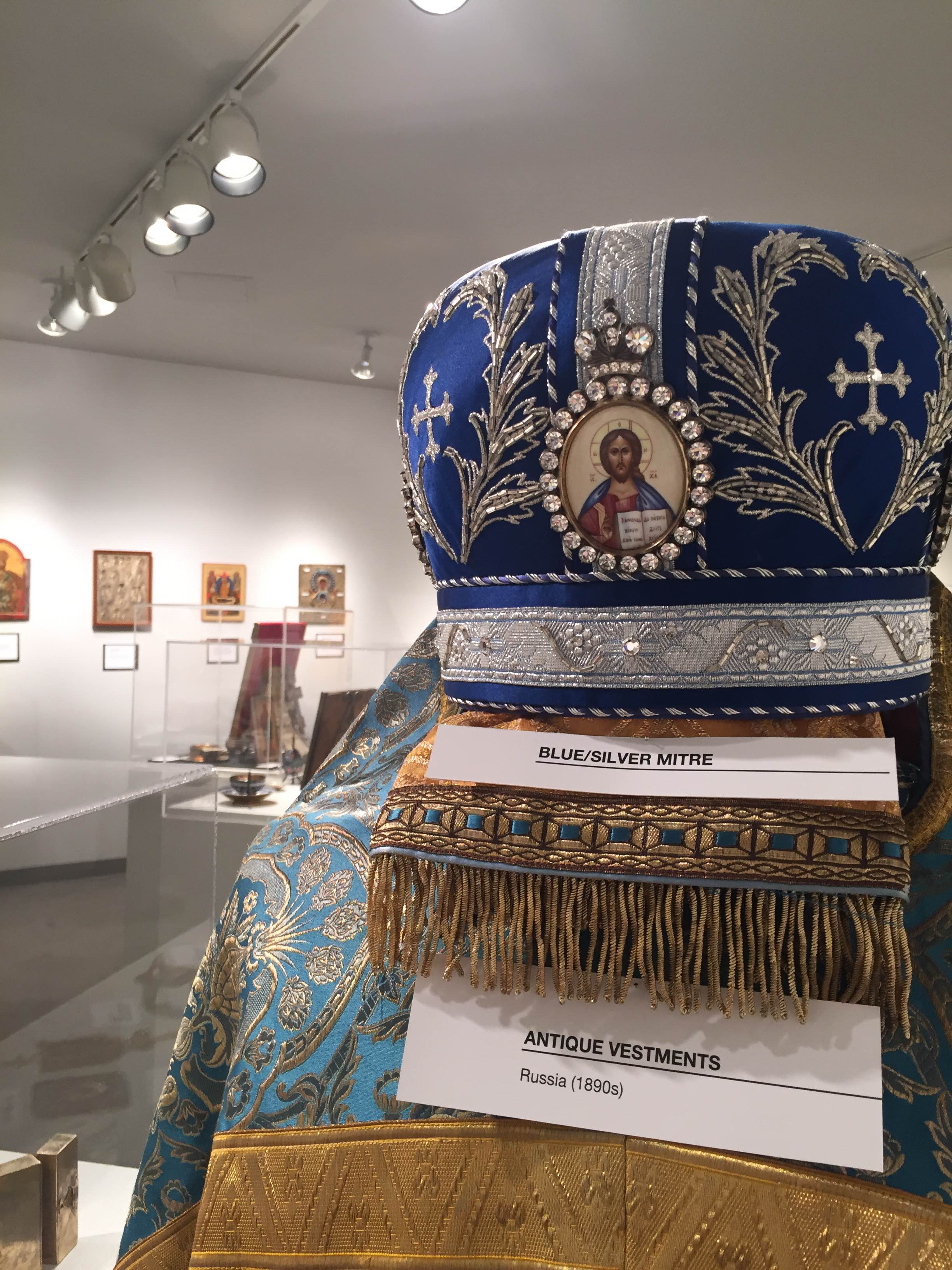 You know, the little headpiece he wears that looks like a beanie? I went up to Marywood’s Suraci Gallery in the Shields Center after class to take a look at the newest exhibit called “The Mother of God and the Saints.” Going in I expected the religious pieces to be modern day reproductions, but instead what I found were precious relics that were hundreds of years old.