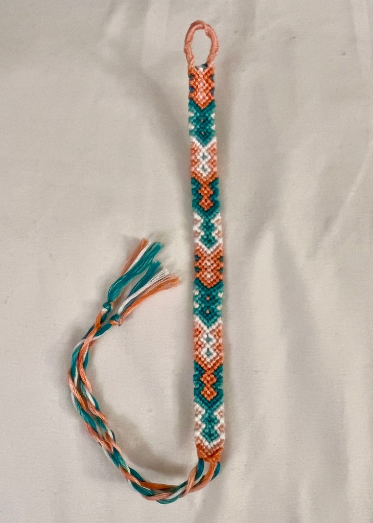 First, I’ve been revisiting making friendship bracelets. Friendship bracelets were very popular during COVID-19, but I haven’t made any since then. I have a ridiculous amount of string left over from that time, so I decided to use some of it and make a few. I’ve been loving making them while watching a show with my mom or something like that. It’s nice to work on something passive after being super focused on art projects for school.
