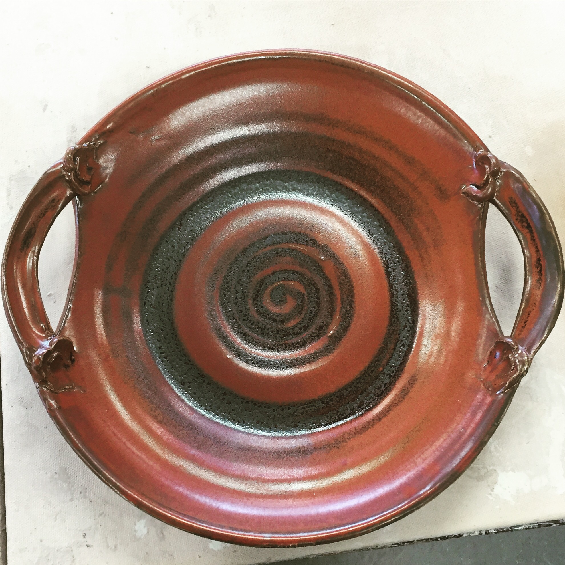 This is my original one. I love how the center swirl turned out with this glaze because it just accents it to nicely. This was also the first time I got I ever worked with a white clay body. The white clay body made the glaze more intense than it usually does with our normal clay body.