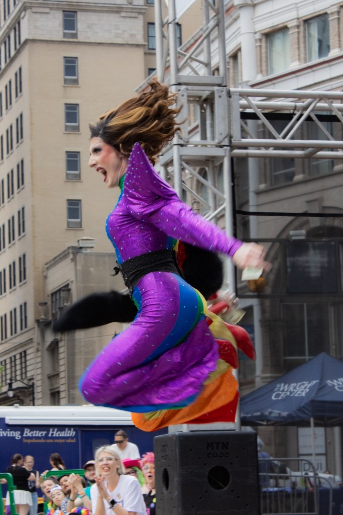 It was a lot of fun seeing the drag queens/kings perform and photographing them at Pride. The energy there was fun and exciting. Everyone was cheering and giving them tips. I loved capturing their energy and personality through my photos.