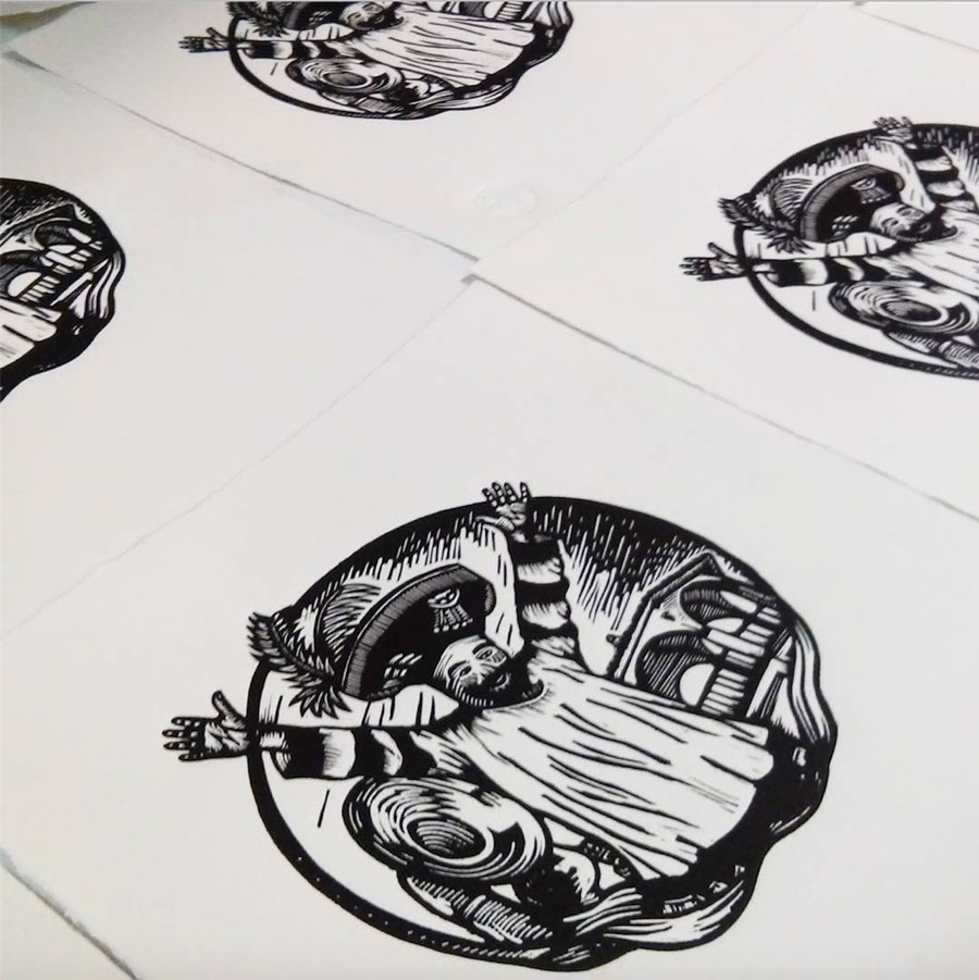 Carlos is also a Mexican printmaker. He works in several different styles but the level of detail he showcases unifies his work. He likes to print in black and white giving his pieces a more dramatic feel.
