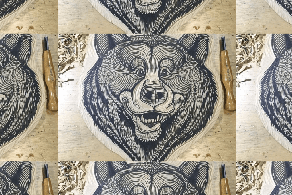 “Nooshstudios” is the name of Chris Neuenschwander’s art business. He posts about every week and his content consist of woodcuts. A woodcut in printmaking terms is when you crave into the surface of a woodblock cutting out the negative just like you would with a linoleum tile but with different tools and technique. Typically you would just use the ink roller to coat the surface of the woodblock you have carved and place it onto paper–ink side on the paper–and, by using pressure or a roller, the image will transfer to the paper making a print.