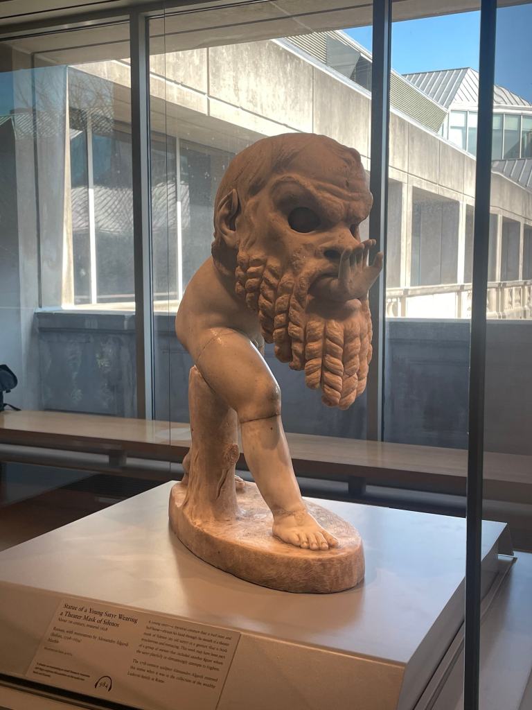 The Statue of a Young Satyr Wearing a Theater mask of Silenos. Why yes, it is a mouthful. But oh my gosh I LOVE IT. There is something about this hunk of marble that ignited such a pure and childlike joy inside of me. I mean, how could it not?? Despite being made hundreds of years ago, there was something so nostalgic about this young satyr engaging in childlike play. Whether it was playing pretend, or dress-up, or hide and seek, we have all played like this before. Though many of us are not half goat, all of us are (as far as I’m aware) at least half human. This statue is just that! It feels so incredibly human.
