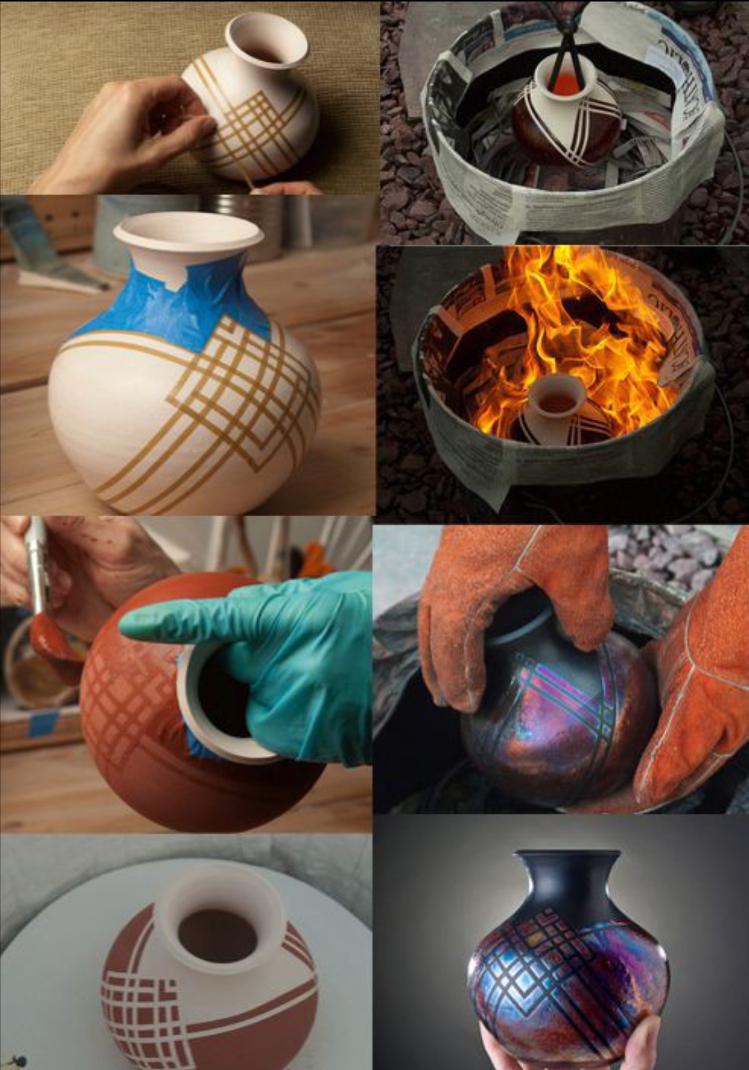 This process creates vibrant colors and creates a metallic like covering on the pottery, depending on what raku glaze is used.