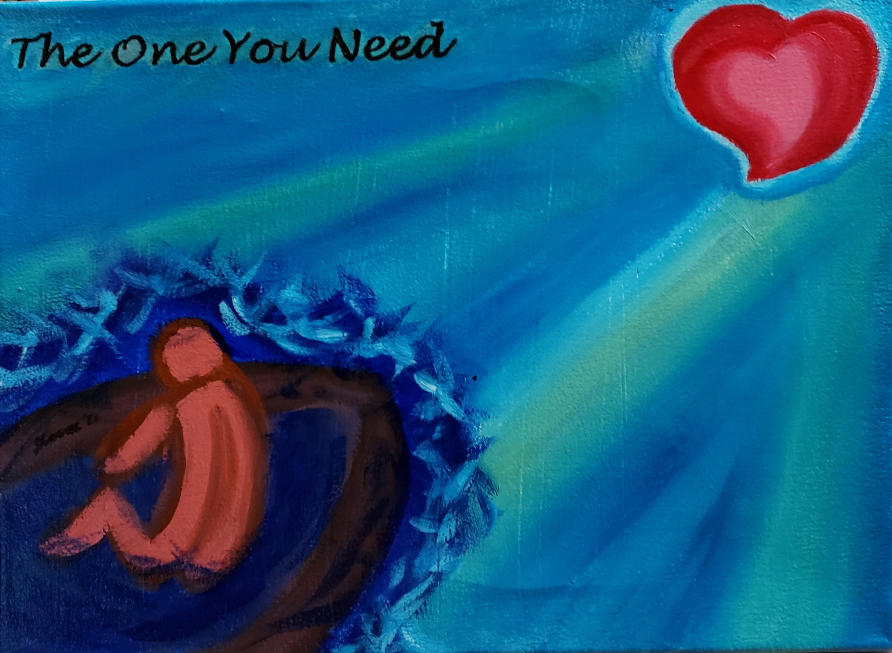 When I heard Eldredge’s song, Castaway, it was around a period in my life back in 2018 where my clinical depression got so bad combined with an emotionally abusive relationship that I sought help for thoughts of suicide. I didn’t want to be a castaway and wanted to be embraced by the Divine. Castaway is defined as a person who has been shipwrecked and stranded in an isolated place. Eventually my meds were corrected and the abusive person was removed from my life. I keep this painting to remind me that others in the world also feel abandoned by God and others, it keeps me humble and focused on my goal to be of service to others.