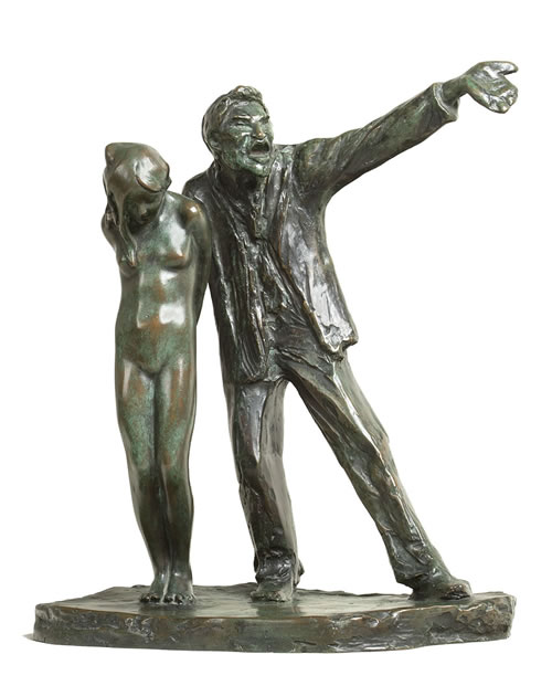 This movement inherently caused artists to use their art as agents for societal change because the subject matter was focused on people who weren’t often represented in high art. One example of this is Abastenia St. Leger Eberle’s White Slave from 1913. This small bronze Realist sculpture depicts a young girl being sold into the sex slave industry, which is an unfortunate and untold part of our collective world history that continues to date. This statue is a commentary on the fate of many immigrant and low-class women of this time. A young girl stands completely naked next to an older man who stretches out his hand in a request for payment for her. She is portrayed as having no power whilst she is being auctioned off. Her head is completely facing downwards and her shoulders are rounded forward, putting her in a position of complete deference. Additionally, her wrists are being held behind her back by the auctioneer. She has no say in this. Her smooth skin contrasts with the rough texture of the man’s suit and facial expression and evokes in us, the viewer, a deep sense of disgust in the situation. This subject matter ruffled more than a few feathers at the Armory Show of 1913 where it was deemed the second most controversial artwork there. Abastenia St. Leger Eberle was very active in women’s rights issues and had strong beliefs regarding social justice. We see in White Slave how she forces us to look at the horrible truths of society, and when confronted with this real and raw truth, the conversation surrounding societal change begins.