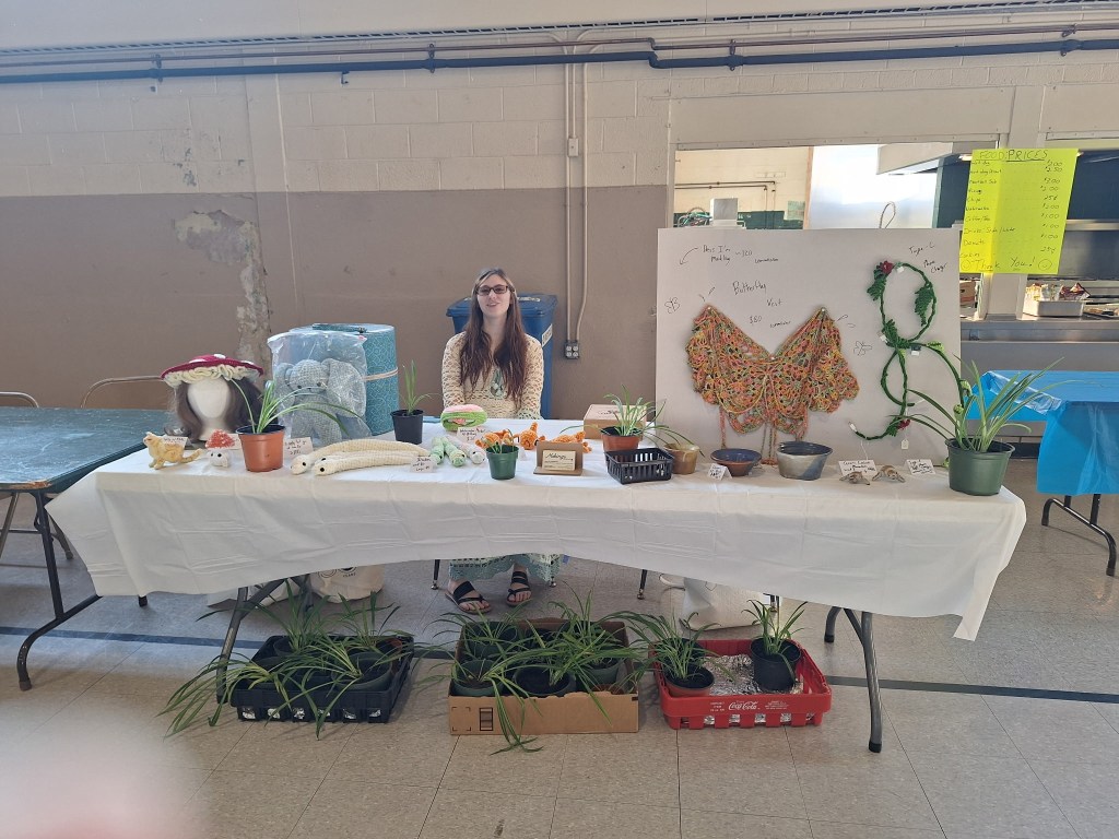 I was offered a table at my local church’s flea market two weeks ago. This was exciting news, but also terrifying because despite crocheting things for most of this summer, many were commissions and my stuff to sell was somewhat limited. I got to work on some smaller items (some little snakes) that might sell fast and are also rather quick to make. I also prepared some plants to sell, since I have a bit of a green thumb 🙂