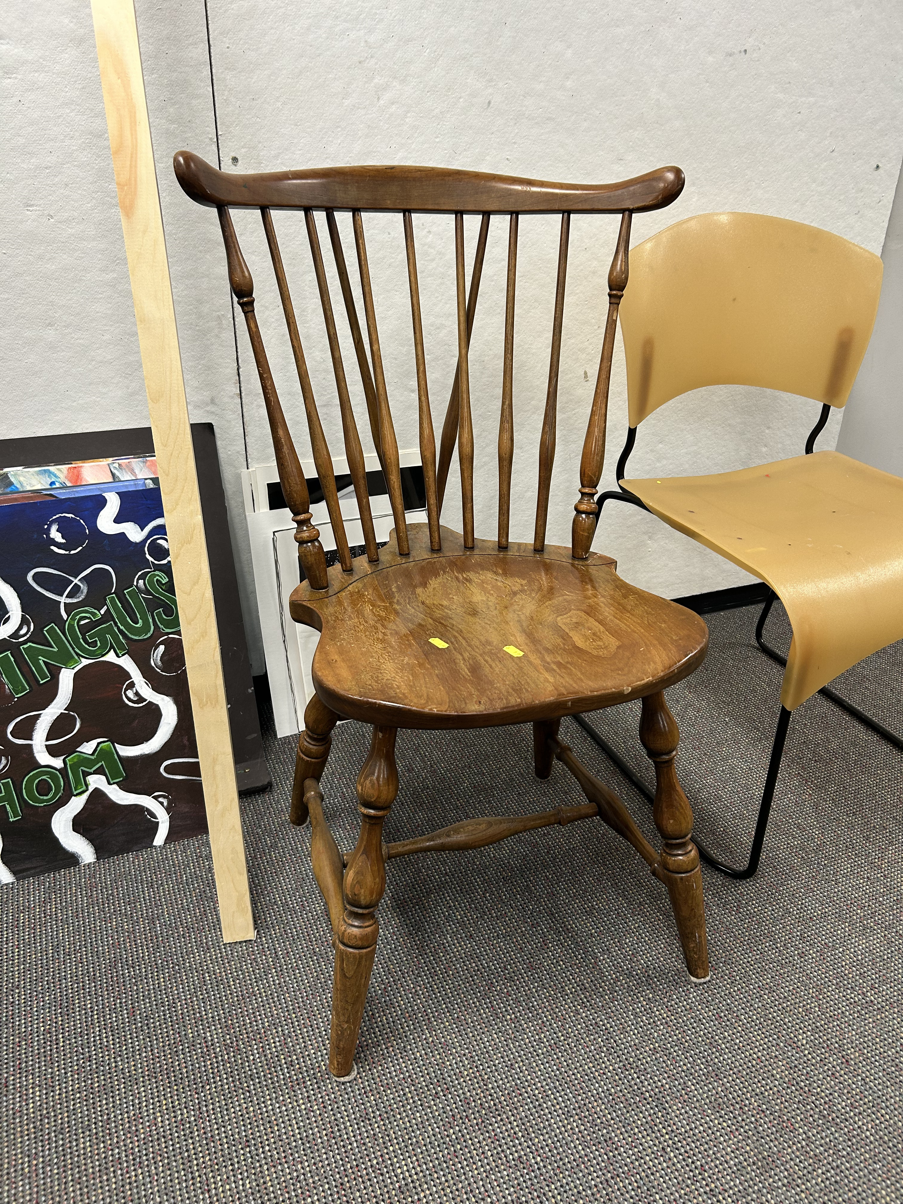 So for my final project in my 3D design class we were takes with making a piece of art using a piece of furniture that we found at a thrift store. We were given the restraints of needing to compose it within a rectangular frame, and we could only select one color to paint it. I went to salvation army to find a piece of furniture, and when I got there I immediately spotted a chair sitting in the corner of the store. It was looking a bit sad, it was quite worn down but still sturdy and standing tall.