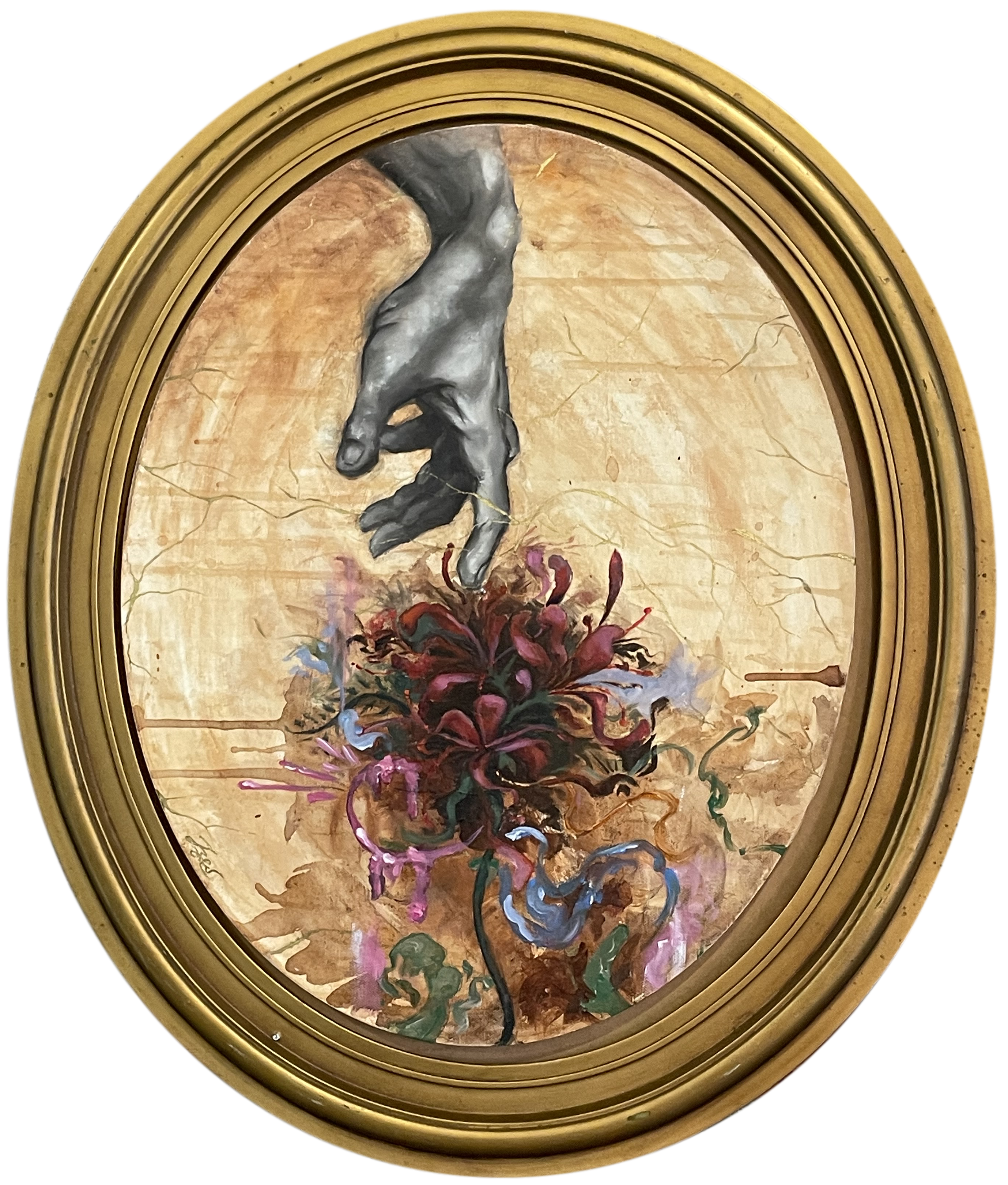 As you can tell, this was a master study of Michelangelo’s well-known, Creation of Adam. I was initially doing it for my AP Art class back in high school and had given its meaning behind my thought process by sticking a picture of the hand and painting the other. But after looking back at it really felt incomplete, so I ripped off the image on a whim. I’m glad I did so instead of keeping the art as something I wasn’t very proud of. I painted a flower- specifically the spider lily since I liked one of its symbolism regarding the final goodbye and the passing of something. The painting then somehow created a personal meaning as I continued working on it. I can gladly say that it feels more precious and better to look at in artistic and aesthetic ways.