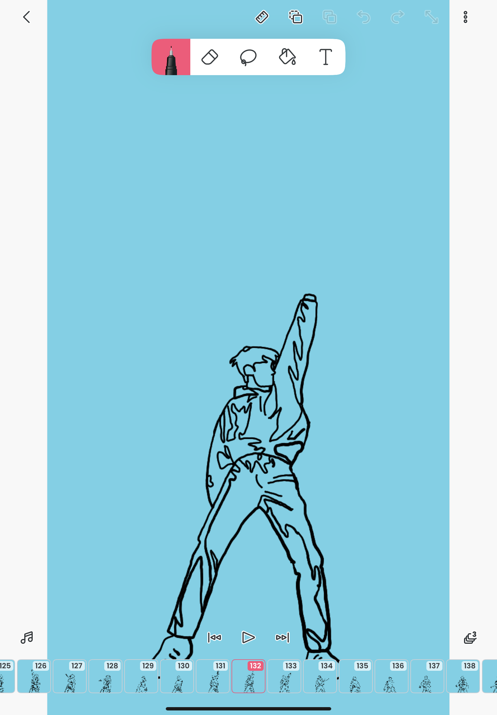 Hello everyone! I take a class called Animation for the Illustrator and it is a really interesting class. We watch animation films and talk about them as well as doing assignments that have to do with animation. The most recent one we are doing is rotoscoping animation. Rotoscope animation has to do with getting a reference video and drawing on top of that reference video in order to create animation instead of free handing it. I chose to do a dance animation for my rotoscoping project and it is 12 frames per second and is only 15 seconds long. The amount of frames this animation has is 180 frames and as of right now I am on frame 141 so I am almost there! I will be showing you pictures of what the process is kind of like with and without the reference video underneath my drawings. I used an app on my iPad called Flipaclip in order to make this animation.