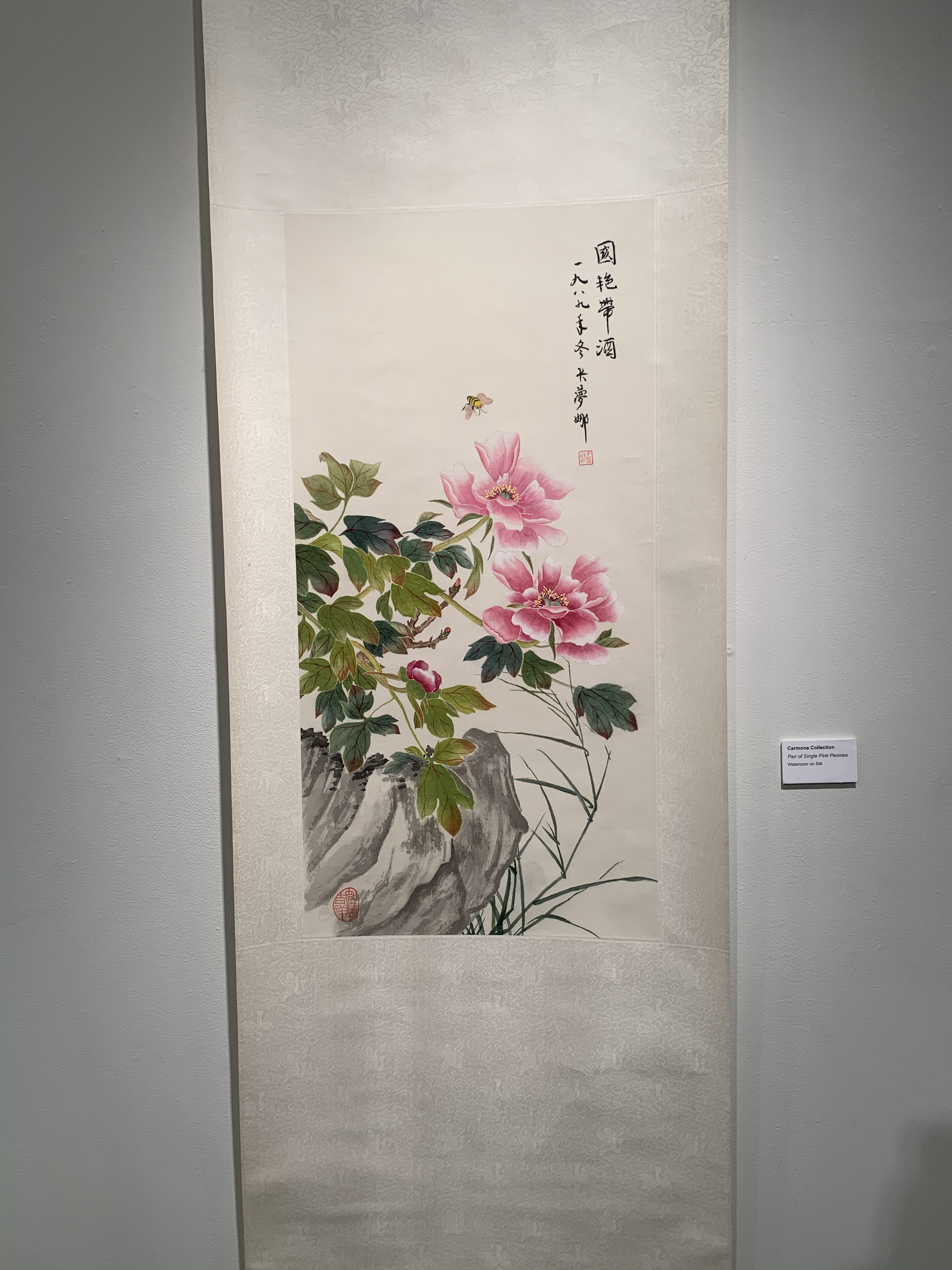 She was chosen to be part of a membership in the Southern Asian Ceramic Society in Singapore. The elegance of Chinese design fascinated Carmona and she took many trips to China to research and paint. She researched in museums and worked masters from Guanzhou, Shanghai and Guilin. She specialized in classic landscapes, flowers and birds, and waterfalls in watercolor on rare paper and silks.