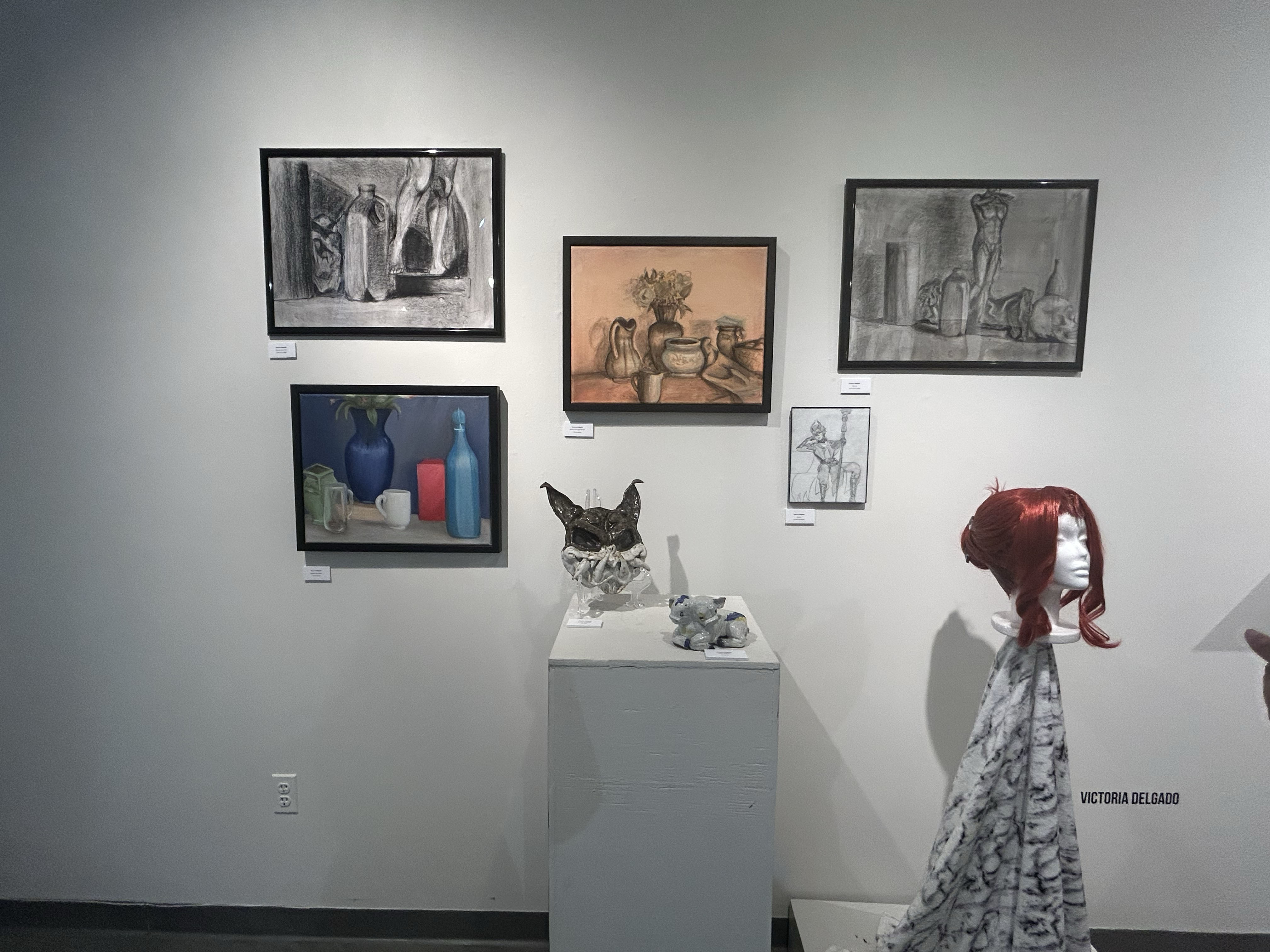 I honestly just love this entire display. It shows such a wide variety of mediums, including the previously mentioned ceramic, but also graphite, oil, and charcoal.