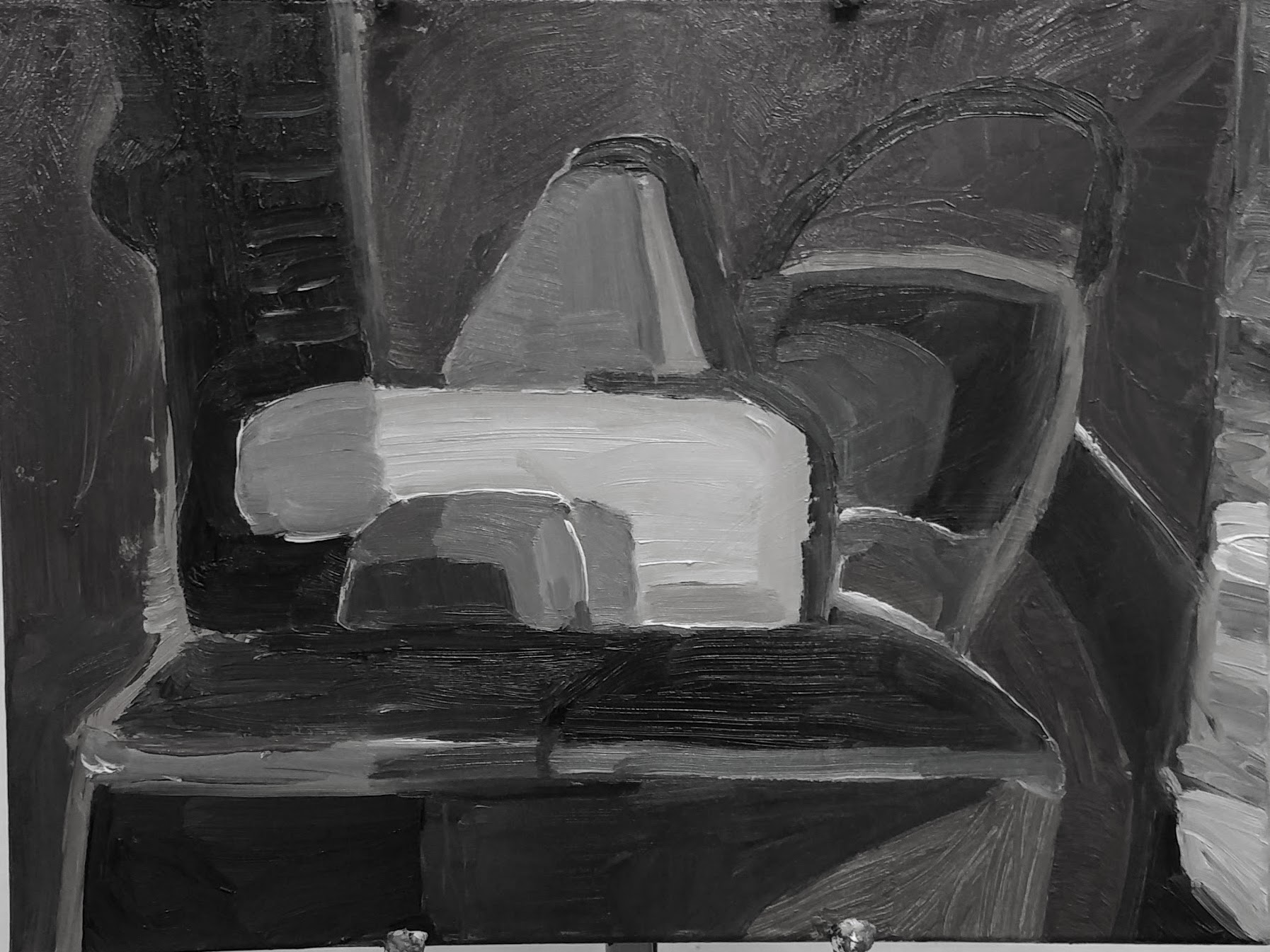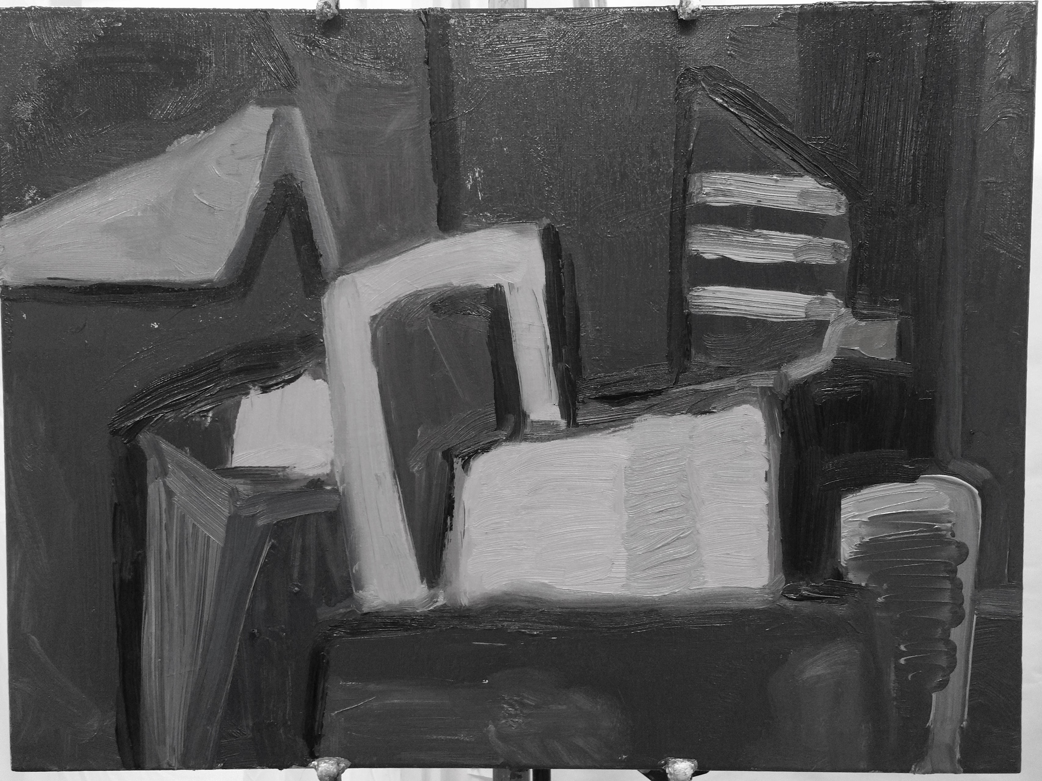 Now this one is working a little better but I think it still needs darker values in the shape to the right or maybe even behind that shape.