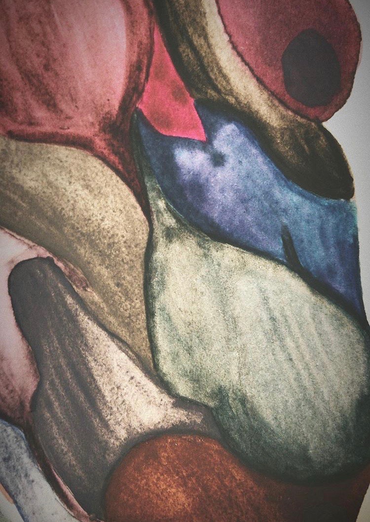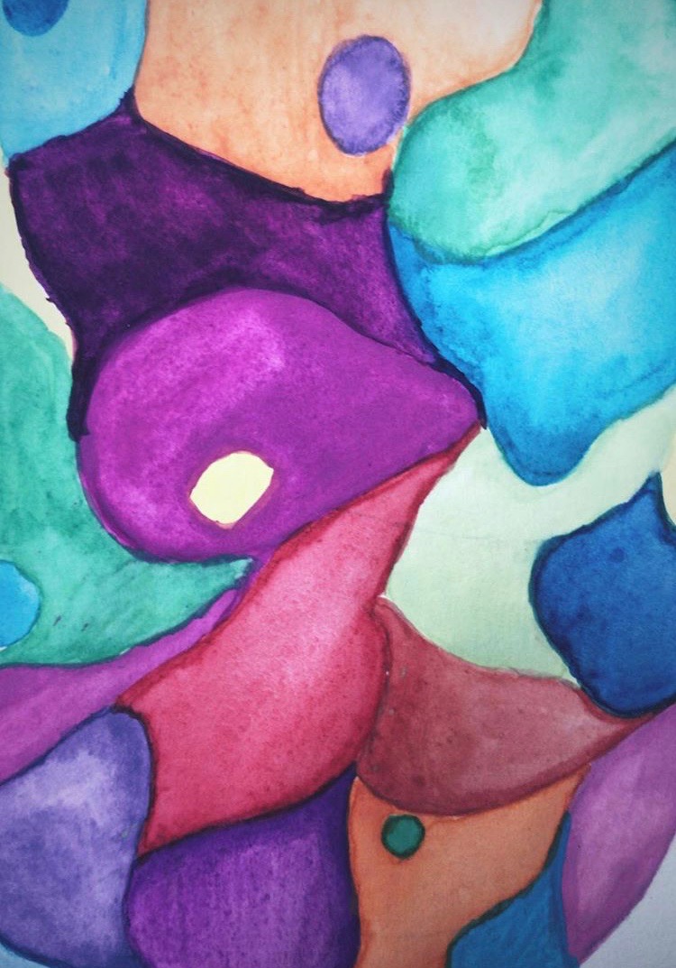 I created a representation of a both hemispheres of the brain with watercolors. The colors incorporated in this piece give me a sense of mindfulness and relaxation, as well as the medium of watercolor. This specific medium is not always for everyone, but I have always been drawn to it since using it in high school. This mindfulness piece is titled “She Dreams in Color” after the song “Better Man” by Pearl Jam. “Better Man” has been one of my favorite songs since I first heard it and speaks to me in such ways through their lyrics. I am happy another art was there to inspire me for the creation and meaning behind this piece. Here is my final piece and some of its moments.