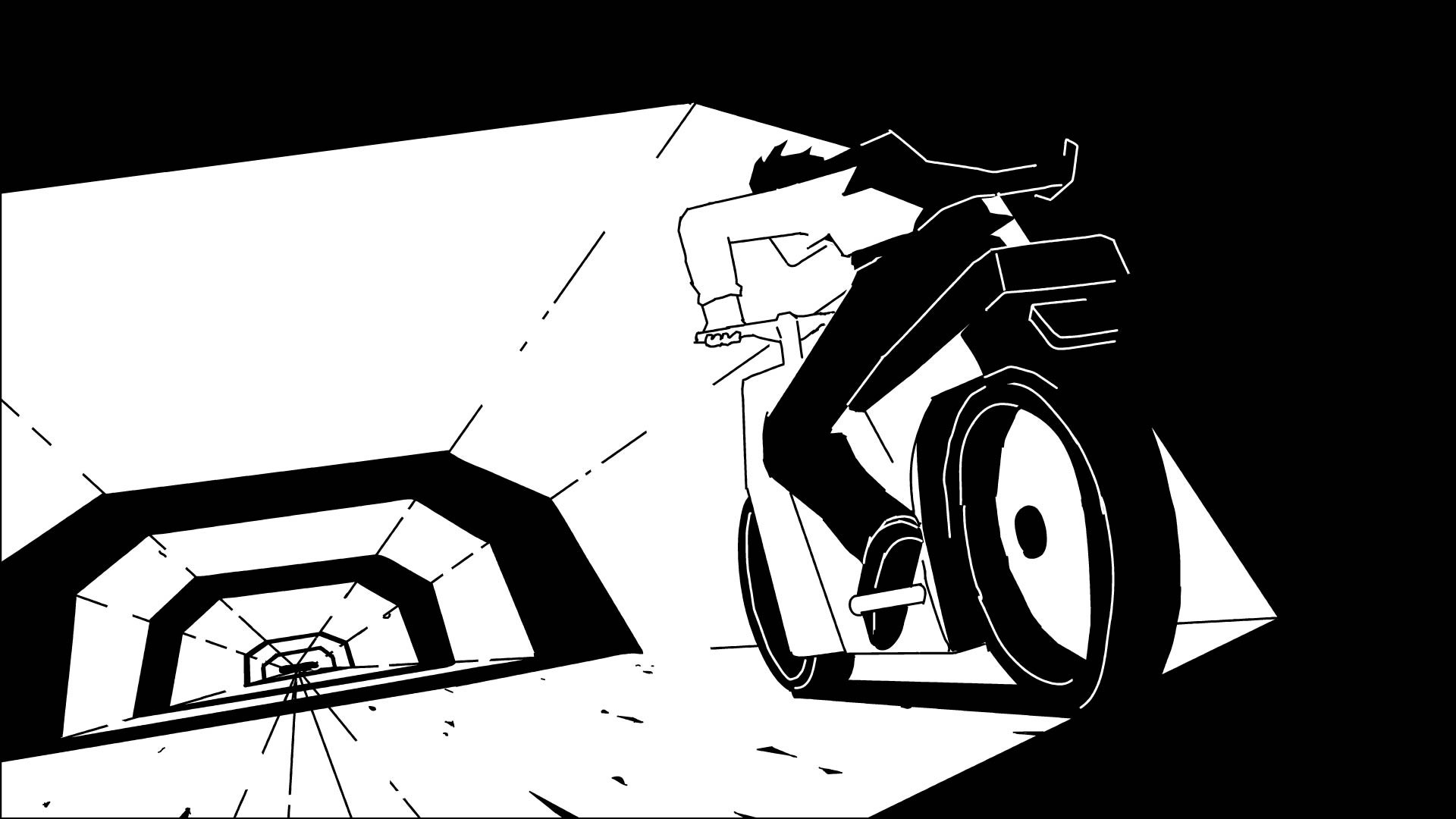 The music video features three separate characters, each being hunted by a shadowy wolf. The first man shown driving a motorcycle at high speeds to outrun the wolf. The second man is introduced by walking into a bar and grabbing a drink. The drink soon turns into a wolf and begins to chase him. The third girl is shown skating and takes a break in an alley to smoke a cigarette. The wolf appears from the alley shadow and cues another chase. The song associated with the music video has themes of fighting off addiction. I think the wolf creature represents addiction and the three people are the victims of it. All the chases coincide and the music video drops its black and white scheme and explodes with a passionate burst of red. The three of them become surrounded by the wolves like how people who struggle with addiction feel like they are being cornered by it. The characters appear helpless at first but one of the characters rises up to confront the threat. Even when it might feel hopeless it’s always better to face your problem head on.