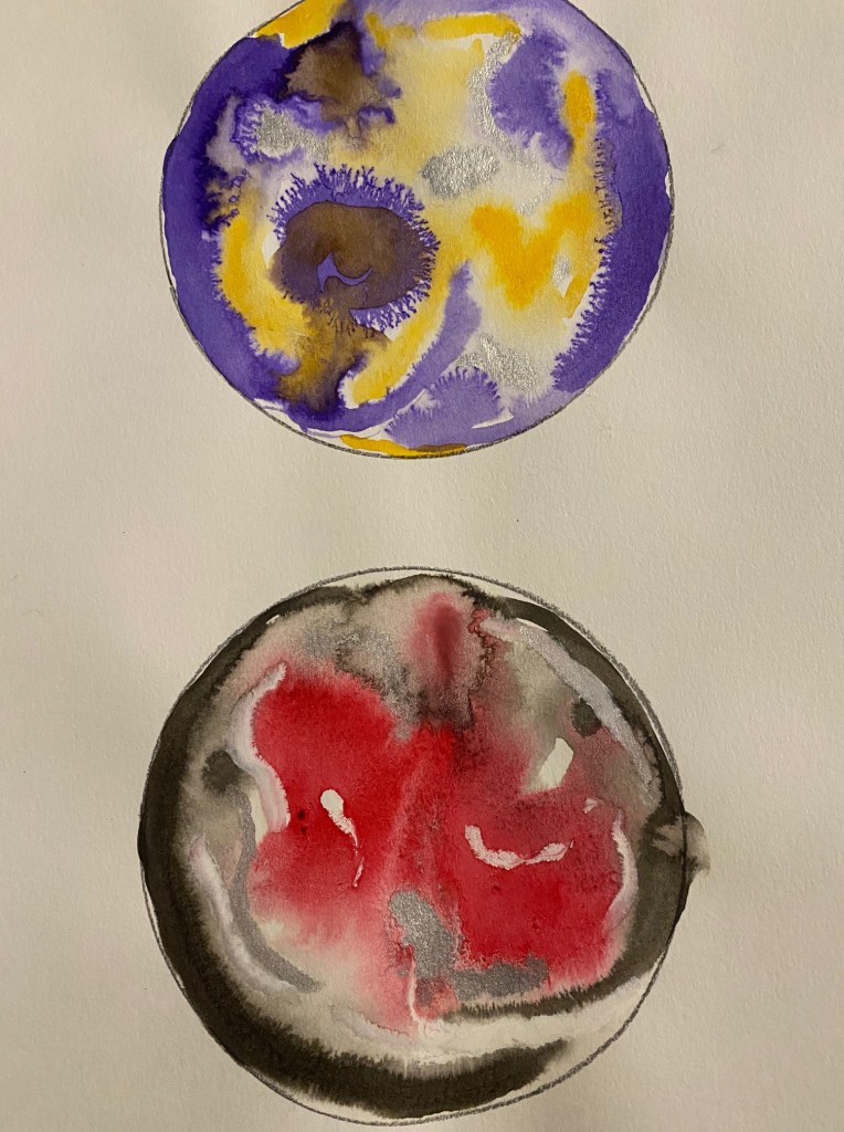 These two pieces were all apart of an experiential in class in which we drew on tiles and then sprayed them with water to make a print. I was a big fan of this technique so I made quite a few of them. It was something that I really enjoyed and would definitely do again.