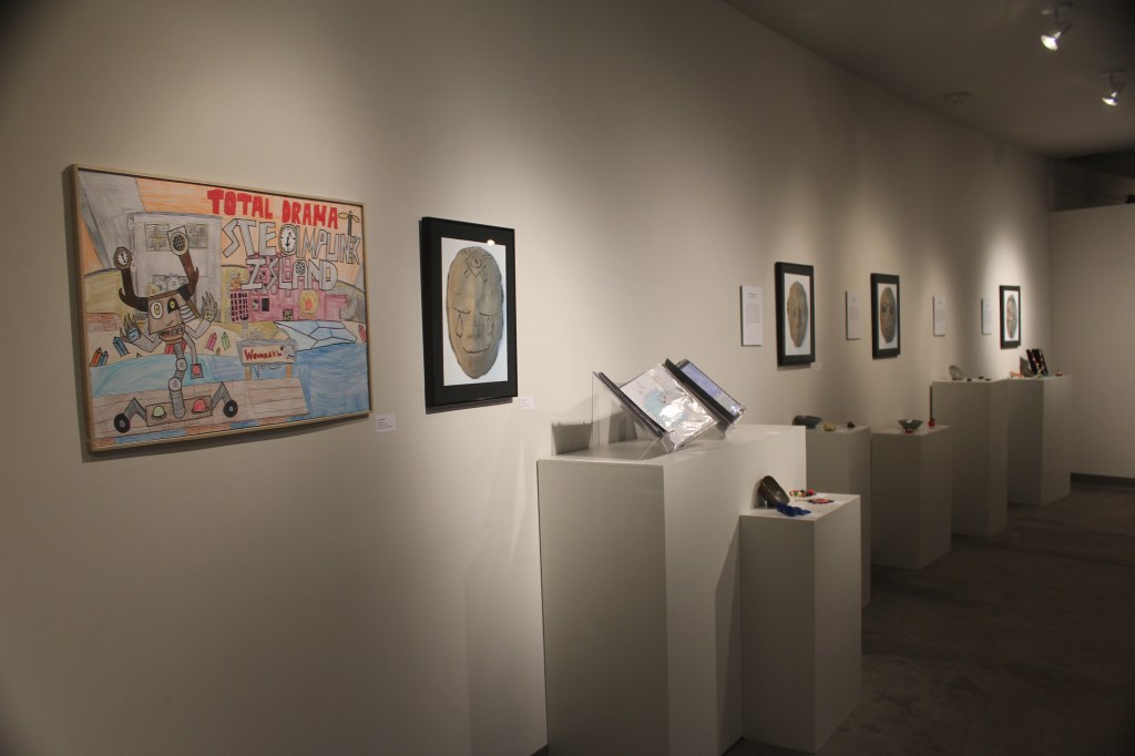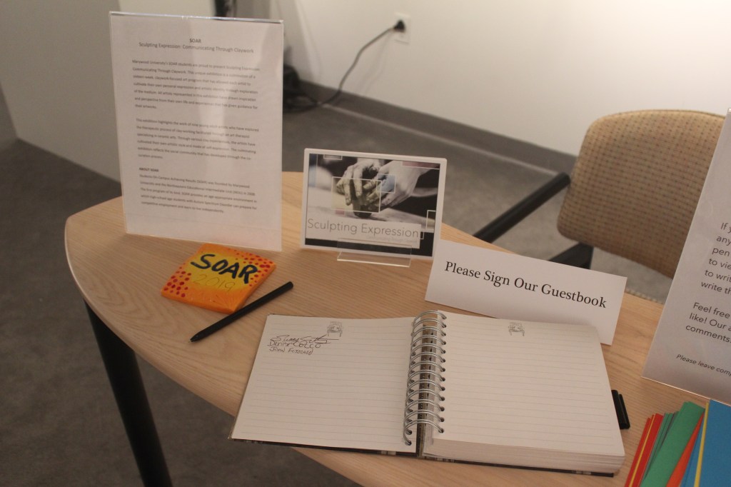 The exhibition included artwork from the SOAR students that was created over the fall semester as part of a narrative approach to art therapy. The reception took place in the afternoon and it gathered 58 guests who enjoyed the artwork, spoke with the student artists, and left comment cards.