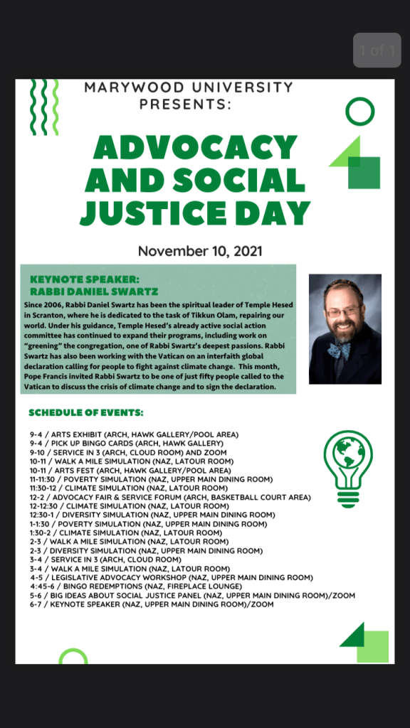 On November 10th, 2021, Marywood University hosted a very special day of events called Advocacy and Social Justice Day centered around social justice and advocacy in our school community and our world as a whole. This day included many events hosted by different parts of Marywood’s community, including an open ceremony of book and poem readings in the Architecture building where a special social justice and advocacy art exhibition was also held.