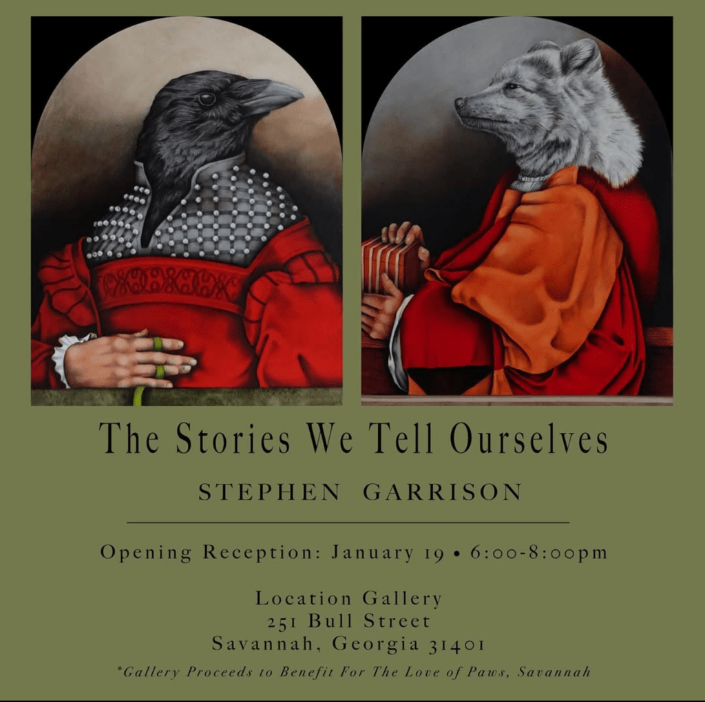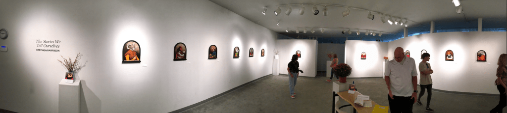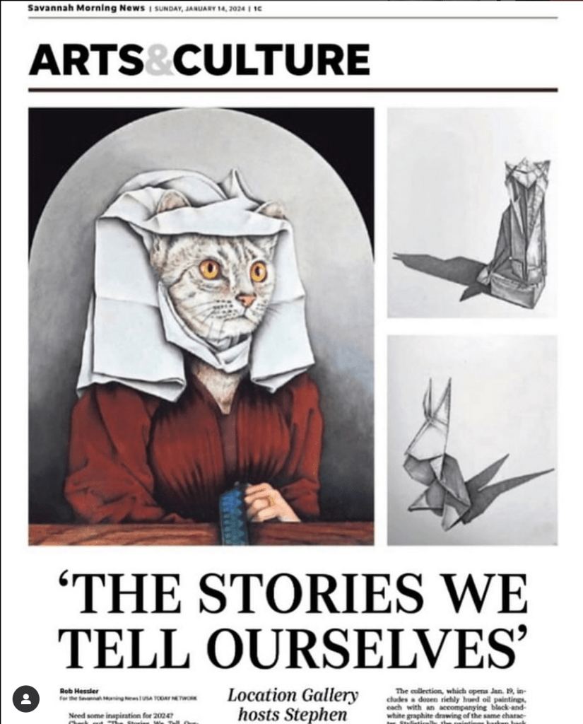 Over the last year I was able to exhibit a group of new paintings and drawings, entitled The Stories We Tell Ourselves, both here at Marywood in September of 2023, and in Savannah, Georgia in January of 2024. This was a connection of the two major creative epicenters of my career, and was an opportunity to focus on creating artwork in a way that I had not been able to for quite some time. In all it was 24 paintings and drawings, with 22 of them being created in 2023 alone.