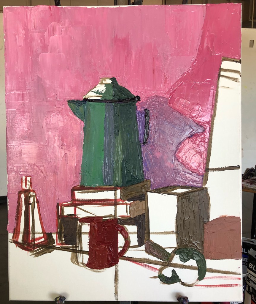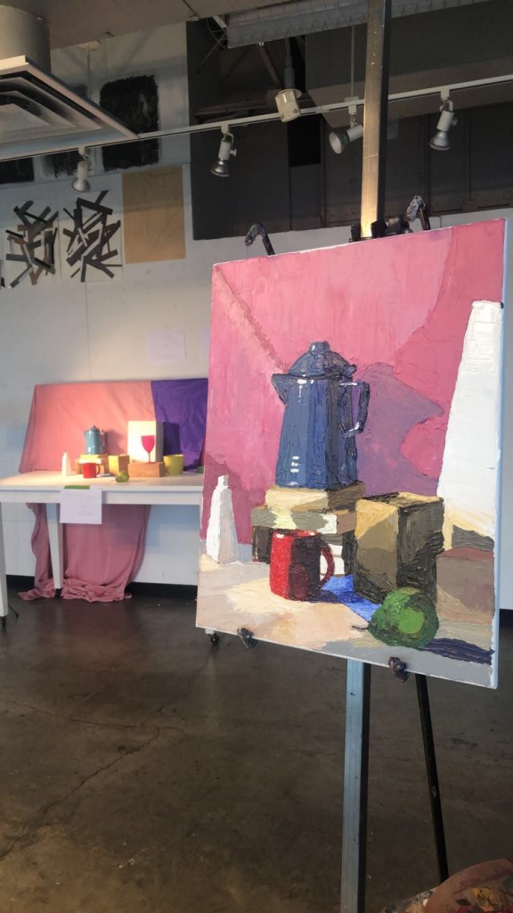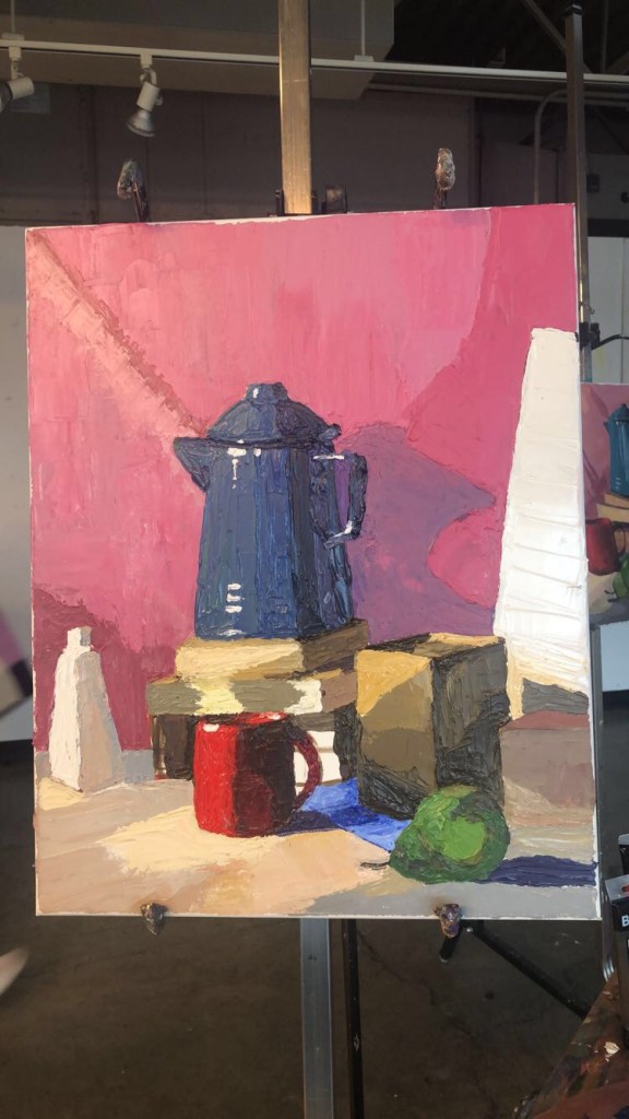 This past week I’ve spent some time working on my final still life for my Painting II class where we are exploring the balance of a successful composition and the use of local color while still using color as value.