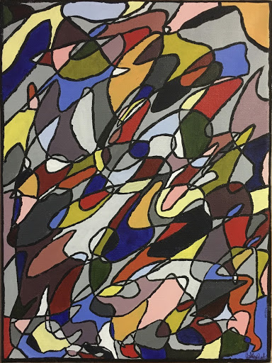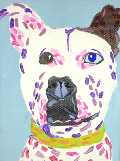 The kinds of things that inspire me are colors. I love colorful pieces and trying to figure out which colors work best together. I also take inspiration from the most random things. I will see something and want to try to take an idea from it and transform it in a piece. I also find inspiration in the dogs in my life. I love drawing the dogs in my family.