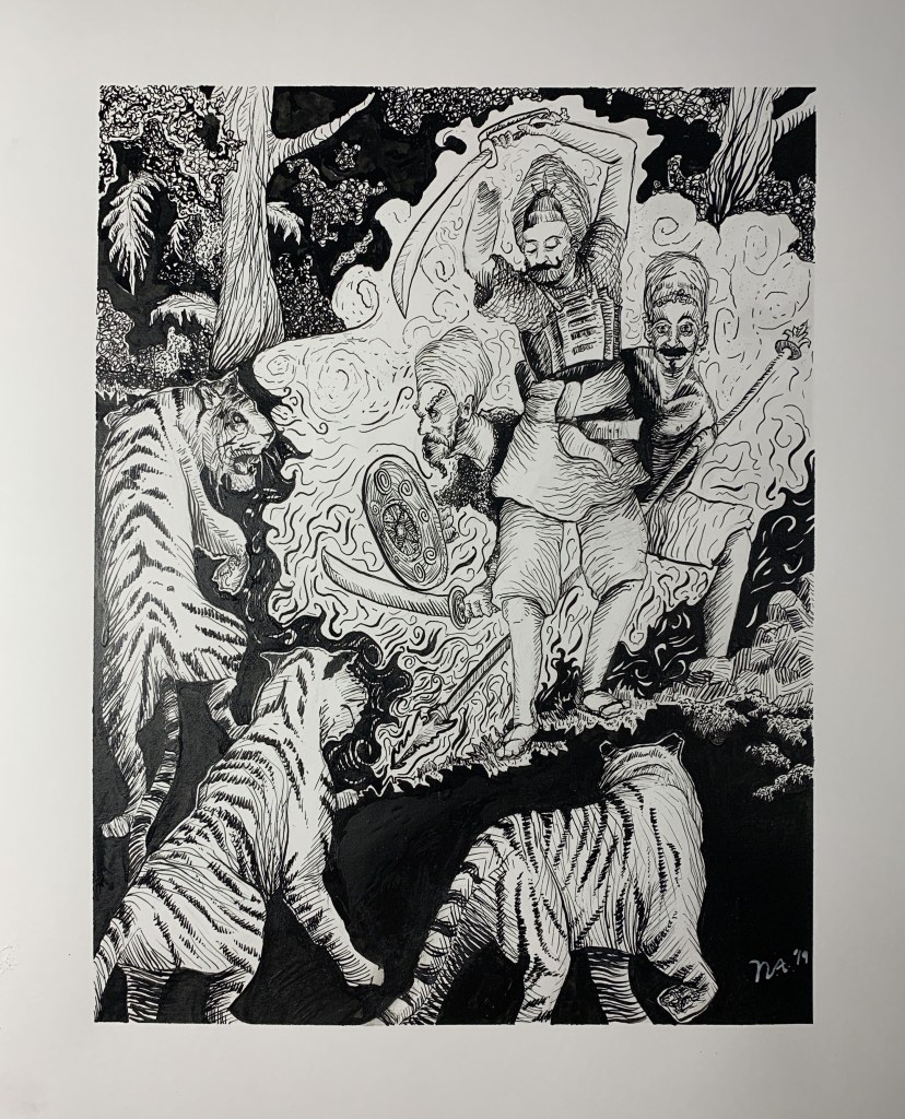 When I’m not in class I continue experimenting and engaging in fine arts or illustrations with ink, paint, etc.