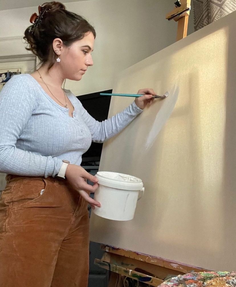 Sara Burgos is a Senior Painting student here at Marywood University! I had one class with Sara and her artwork always caught my eye. I decided to interview Sara because her style has always interested me. Let’s get to know Sara!