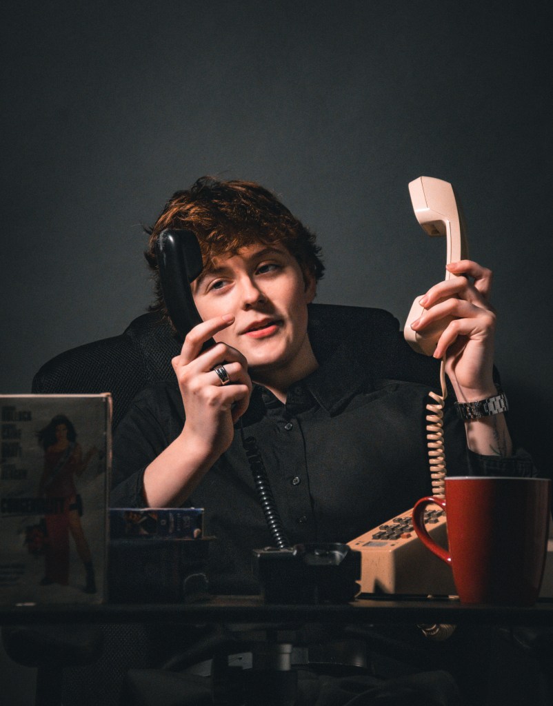 There were no strict guidelines for this project, so we could do anything. I am lucky enough to have wonderful, beautiful friends that will model for me. We went into the studio to mess around and try and figure out what we wanted to do. We found a desk, chair, and a few old telephones and we were able to create a really interesting set up.