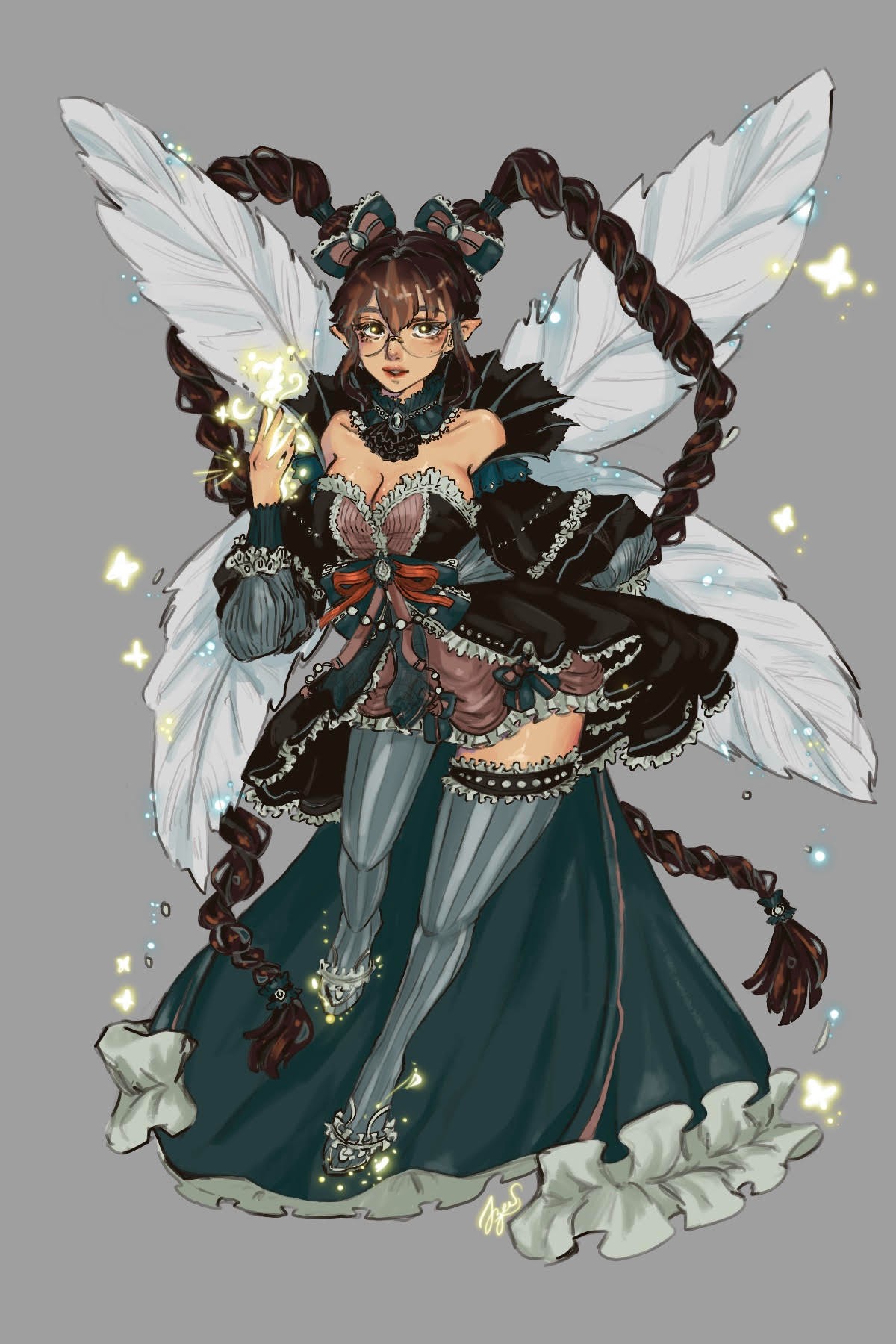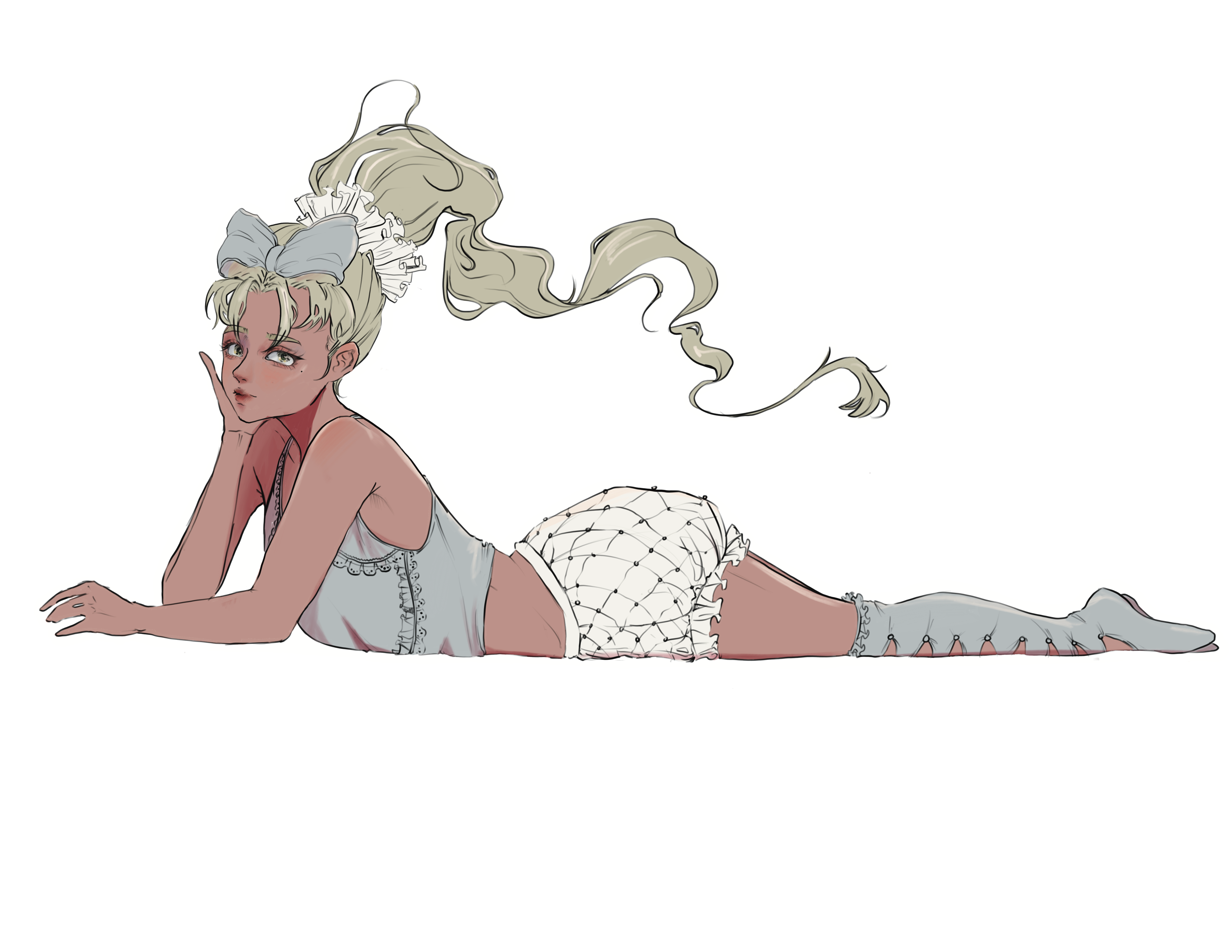 As one who deeply enjoys fashion and experimenting with new designs, I enjoy implementing them in my illustrations. The clothing is what I consider an essential factor for my character. I used to struggle with it before, which is probably why I used to skip the clothing part for my characters and cover them up with floating fabric. I describe it to others as a choice for aesthetics, but in reality, it was just an excuse not to practice learning drawing fabrics. It helped cover my flaws for a while, but I soon had to overcome my weakness. Of course, many tutorials on YouTube are easily accessible with a few search words; therefore, I won’t be giving a step-by-step tutorial on it.