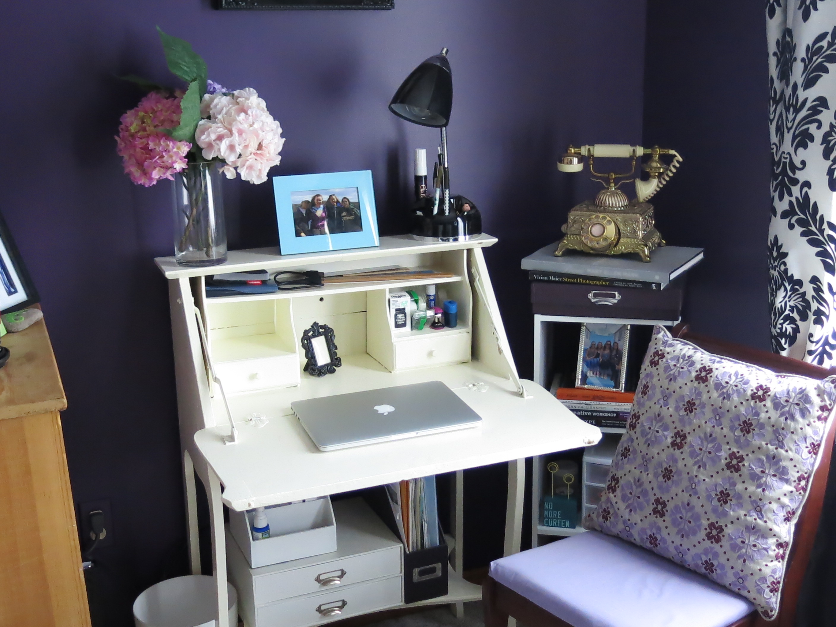 My room has a more vintage feel; my desk used to be my mom’s when she was young so I love the charm of that. I think it will be the perfect place to work on my calligraphy this summer!