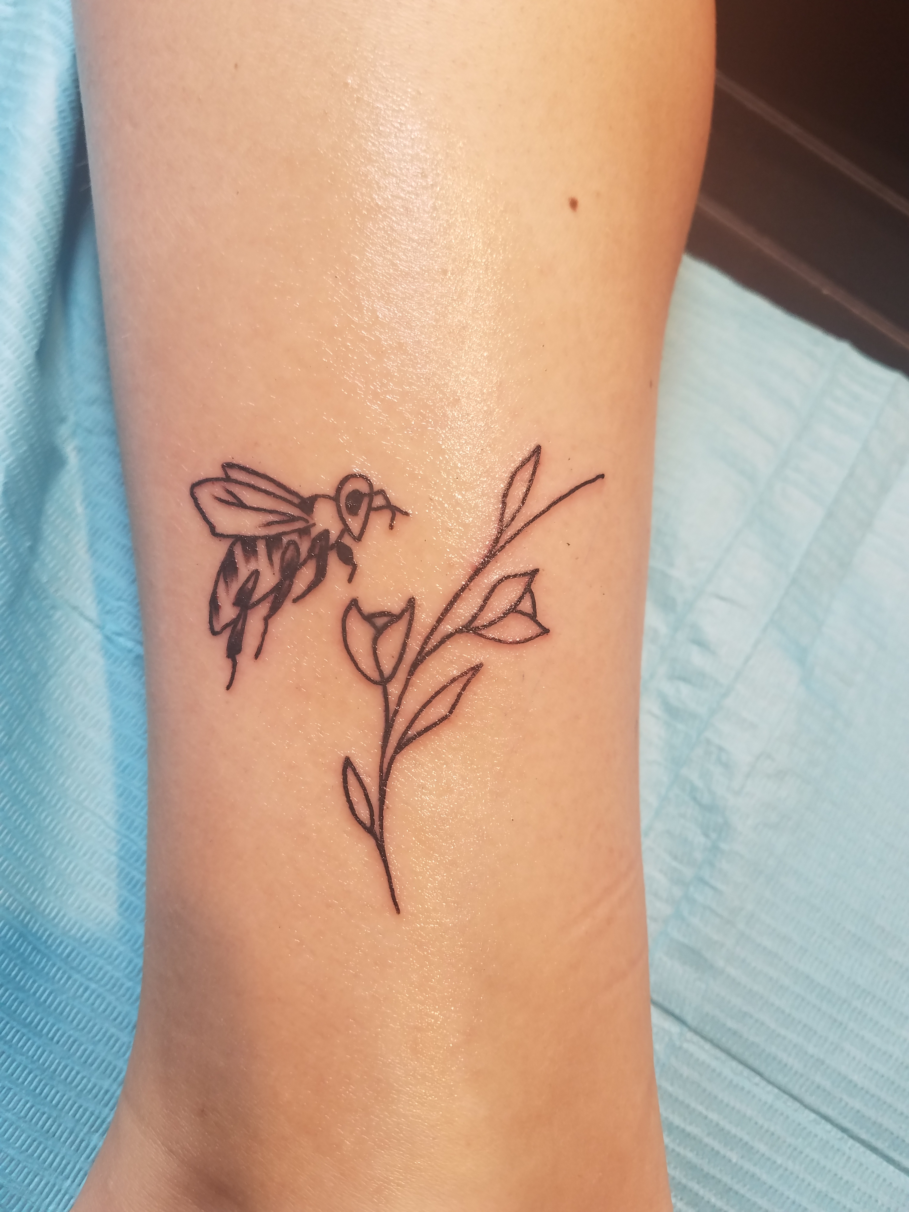 This week I got matching tattoos with one of my best friends, Allayna, and my mom since she loved the design so much. I drew this cute little bee with flower buds a couple of months ago and I even mentioned it in a past blog post. We were finally able to go get them done since my friend came down from Philly. This is actually my second tattoo that involves a bee. They both mean a lot to me and are in honor of my sister, Ashlee, who passed away a couple of years ago. She was more into bee keeping then I was at the time and I like to think she is a bee now. I have been friends with Allayna since middle school and I always considered her a part of my family and she loved my sister like she was her own.