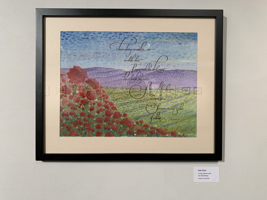 Hi everyone, I want to invite you to go see an awesome show on display at Marywood right now. The show is the Calligrapher’s Guild and it is on display in the Suraci Gallery in the Shields Center for Visual Arts. The show is open to the public and will be up from February 22nd to March 21st. The work on display from the Calligraphers Guild of Northeast PA and the Philadelphia Calligraphers’ Society.