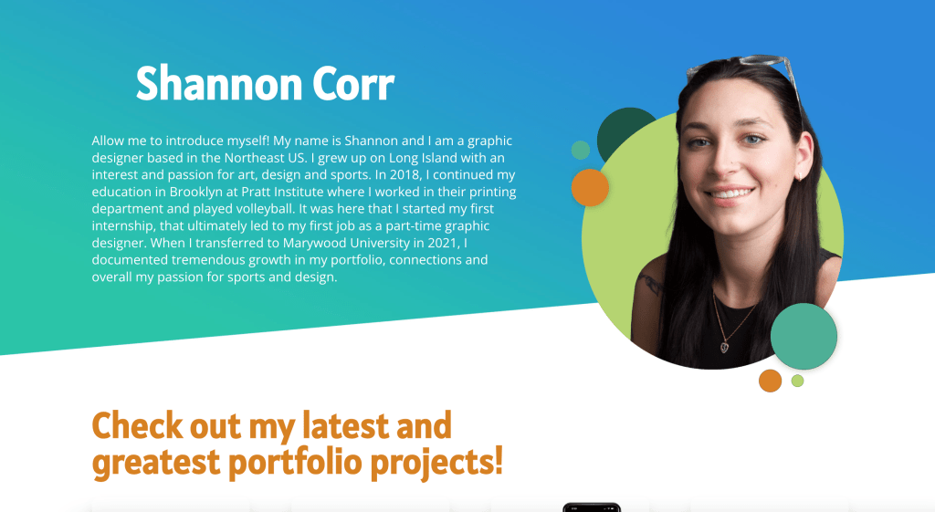 In the spring of 2023, is when my senior show was coming around and I knew I had to be applying to jobs as well. At this point, I was looking at this website thinking, I could totally do this better, and so I started cracking on the second iteration of Corr Graphic. This time was complete with new social media template, business cards, web portfolio and even buttons. I still love the look and feel I came up with and I am really proud of myself for how strong my portfolio visualized. Throughout that year, I had a ton of work to update in my portfolio as well, tailoring it as much as I could towards sports design. I’ll attach pictures of my site in the gallery below, I am in the process of redesign so the website is not live anymore.