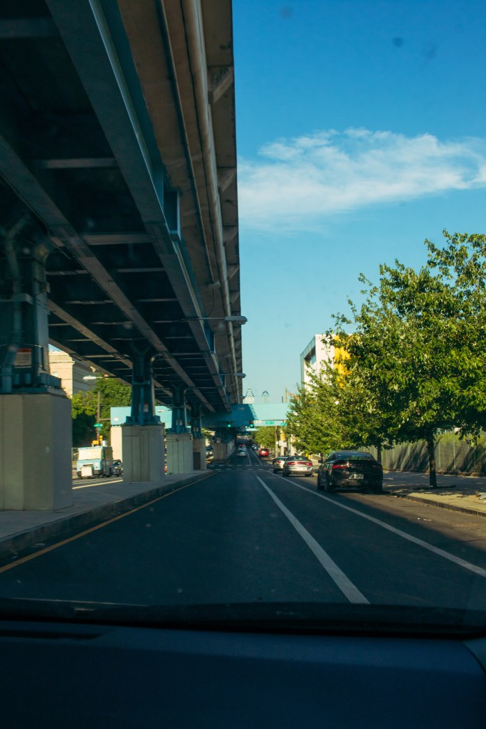Photos taken in the car on the drive to the gallery: