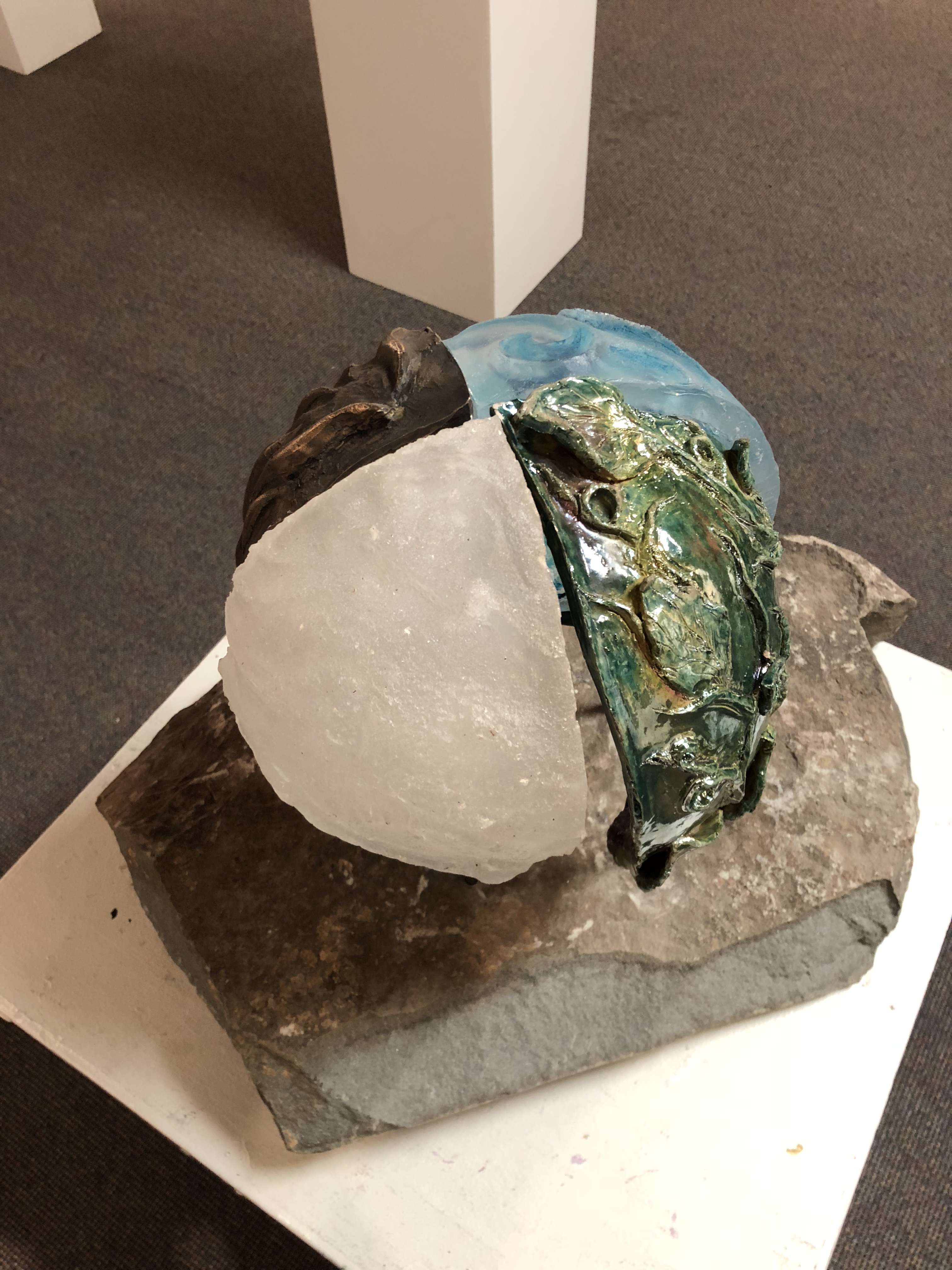 I’m graduating very soon and I wanted to finish any incomplete projects. This was definitely one of them and I’m so happy to see it all together. This project was the hardest one for me because there were so many materials involved; Glass, ceramics, bronze, and stone. It was worth it in the end and I can’t wait to take it home.