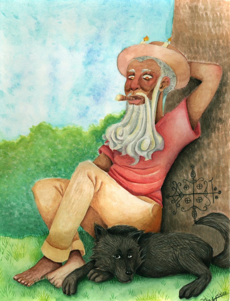 This vulgar masculine spirit and protector of the dead is the inspiration behind “The Princess and The Frog’s” iconic villain, Dr. Facilier. Haiti has a large smoking/ drinking population which comes from the crops we grow, in turn, it’s common to see Lwa partaking in the activity as it’s both sacred and a pastime.
