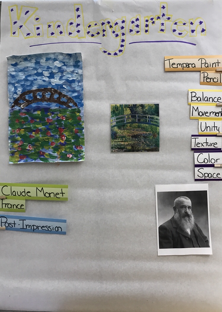 My little ones have been learning about Claude Monet. We read Laurence Anholt’s book “The Magical Garden of Claude Monet” and are painting Monet’s Japenese Bridge in liquid Tempera paints. We have discussed how Monet utilizes his painterly brushstrokes, that look more or less like dots rather than just painting and filling in spaces one color. We also discussed how they can make pink for the Water Lillies by mixing pink and white. I am super excited to see the finished products, and hope that they finish them this week.