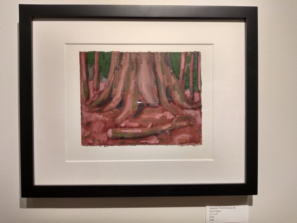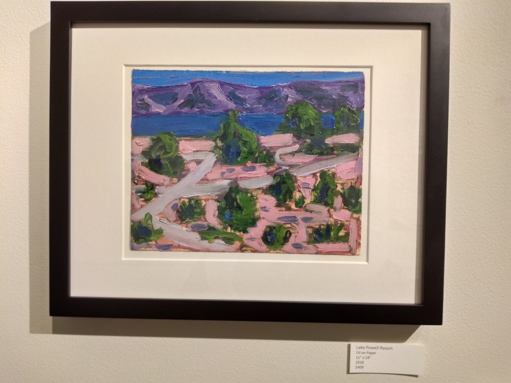 Walsh also spoke a lot about the intense readings he’ll do about the site he’s drawing inspiration from. Using the Grand Canyon this time, Walsh painted a huge piece that looked as if he was flying in an airplane above to capture the landscape, when in reality, he was, as he coined the term, “mapping” out the image he wanted to paint through his personal photographs and through readings about the site he was visiting. Many of the paintings he spoke about were only included in the slideshow and not in the actual show, but if you were to go on his website ( https://davewalshgallery.com/ ), the painting I’m referring to is called “South Rim (Grand Canyon)”.
