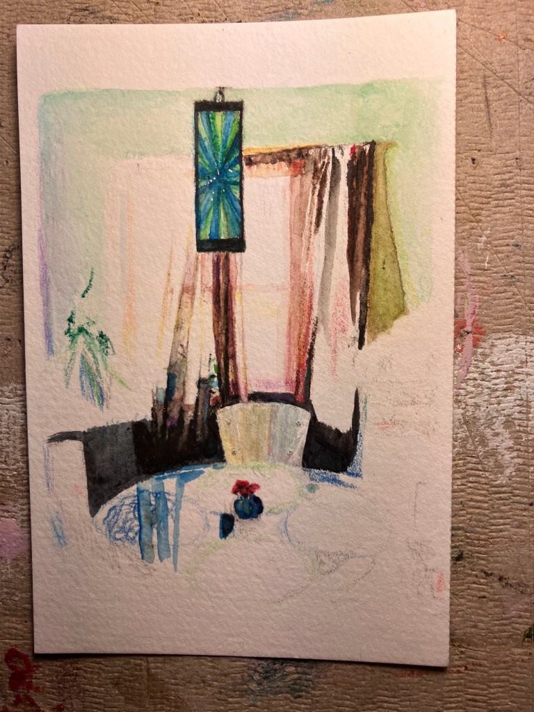 I’m very pleased to say that my work made it into a call for entry! It’s always exciting when I get to put my art on display. I want to go through the process that led my art from sitting in storage to the wall of the Main Street Arts gallery. I’m hoping people like it! It could be sold, but, to be honest, it is a picture of the kitchen in my childhood home, so I overpriced it to a point where if someone does buy it for that much, I’ll be happy and not just sad I sold it.