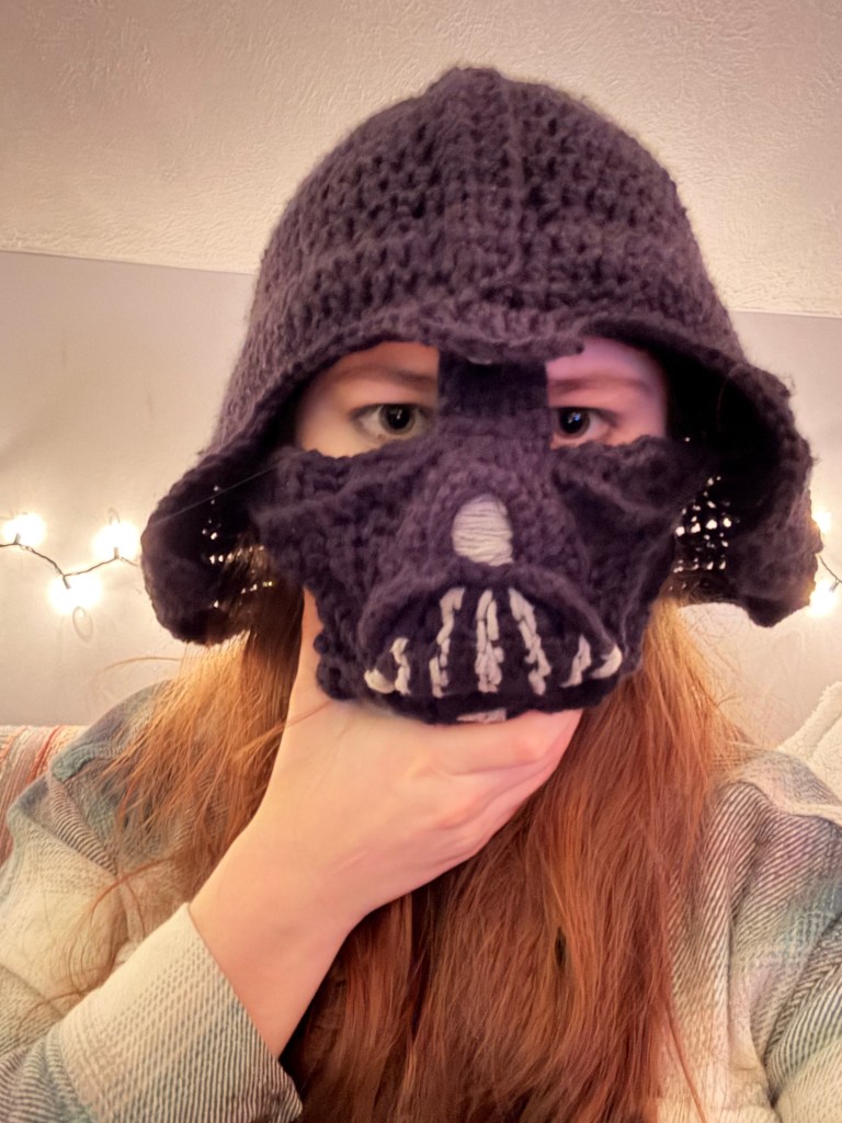 The darth vader mask was as much of a doozy to make as you’d imagine. It was another fun challenge, though. I’d like to make another for a craft fair in the future. I think with more practice and different weights of yarn, I could streamline the design further.