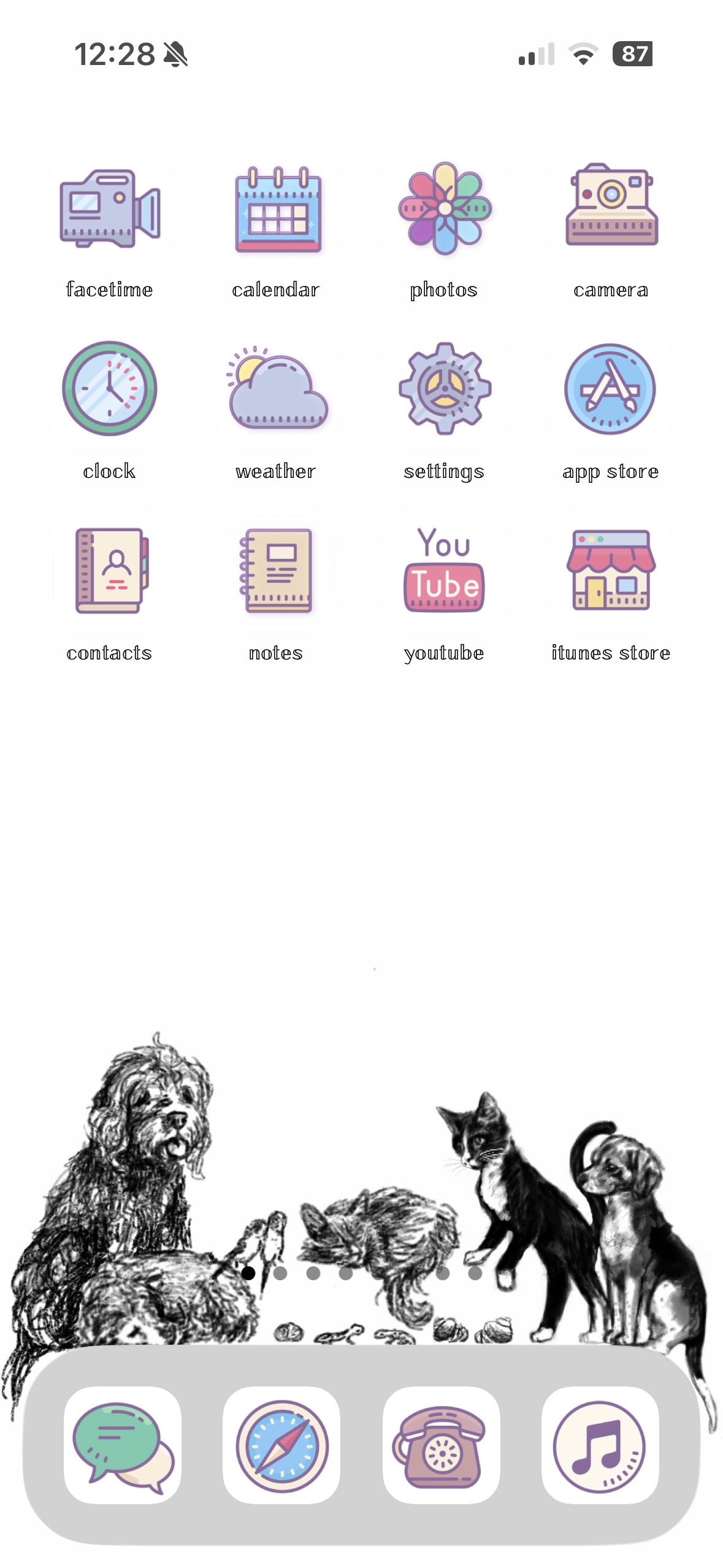 I also finished a project I started during the summer and didn’t pick back up last semester. I was illustrating a new home screen for my phone background to remind me of my pets, past and present. I made it through most of it, but I still had to finish two more pets. I think it’s clear as soon as you look at it which two pets were made more recently. I think that’s a sign of improvement!
