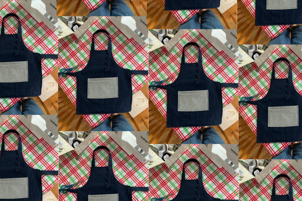 My niece is at the age where she likes to help in the kitchen with mommy and she has been wearing my sisters apron that ties at the neck. I thought it would be cute to make one for her and my nephew that fits their sizes. So, of course I did research on Pintrest. The basic parameters were: size has to fit small toddler, but not too small; color should be unisex so all children can use it; it should be a sturdy material so it can get wet without seeping through; and it should be able to grow with them as they bigger.
